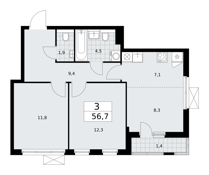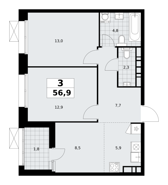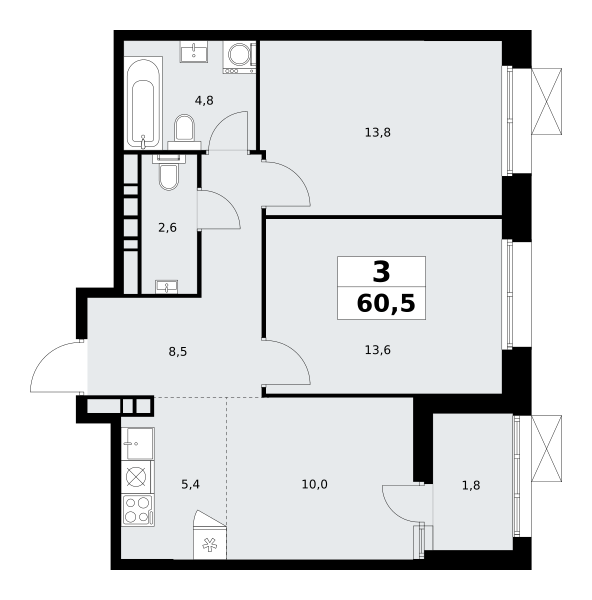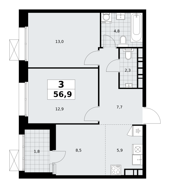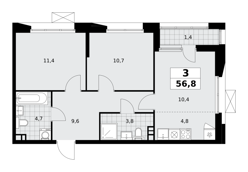 Трехкомнатные квартиры в ЖК Бунинские кварталы