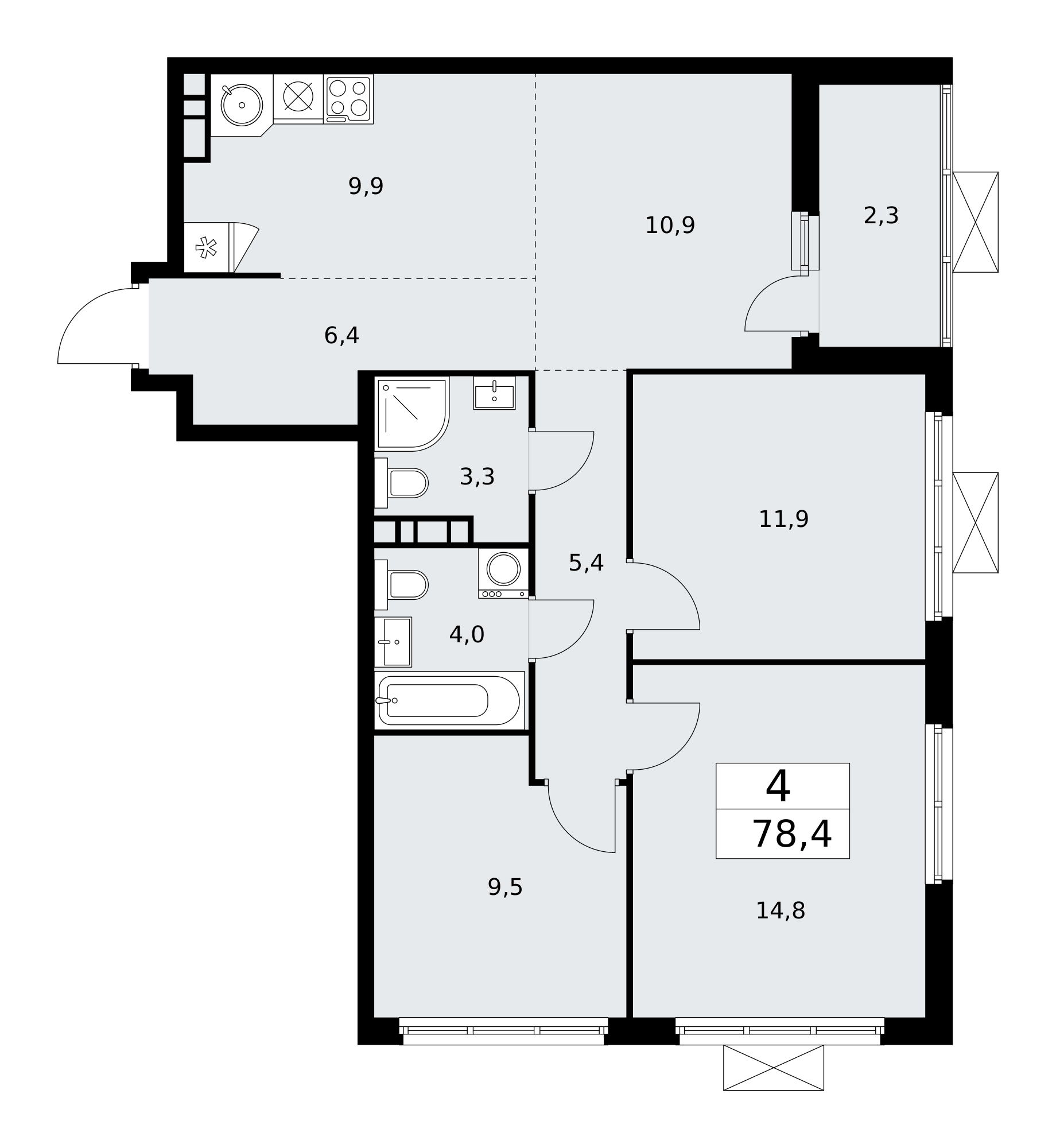 Четырехкомнатные квартиры в ЖК Бунинские кварталы