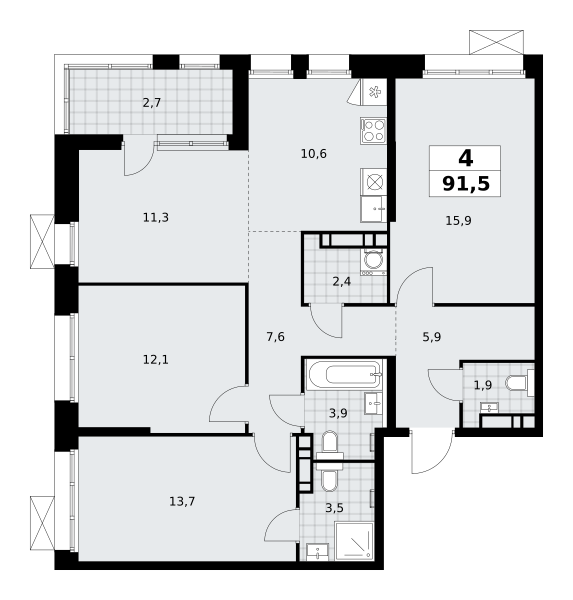 Четырехкомнатные квартиры в ЖК Бунинские кварталы - страница 2