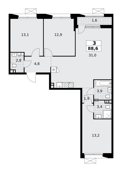 Евро трехкомнатные квартиры в ЖК Бунинские кварталы