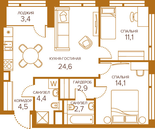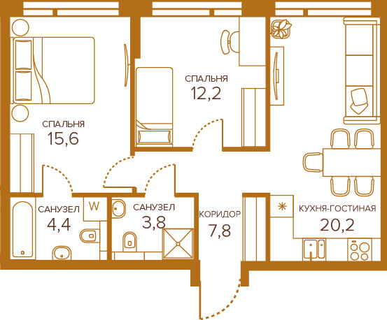 Двухкомнатные квартиры в Дом Champine (Шампайн)