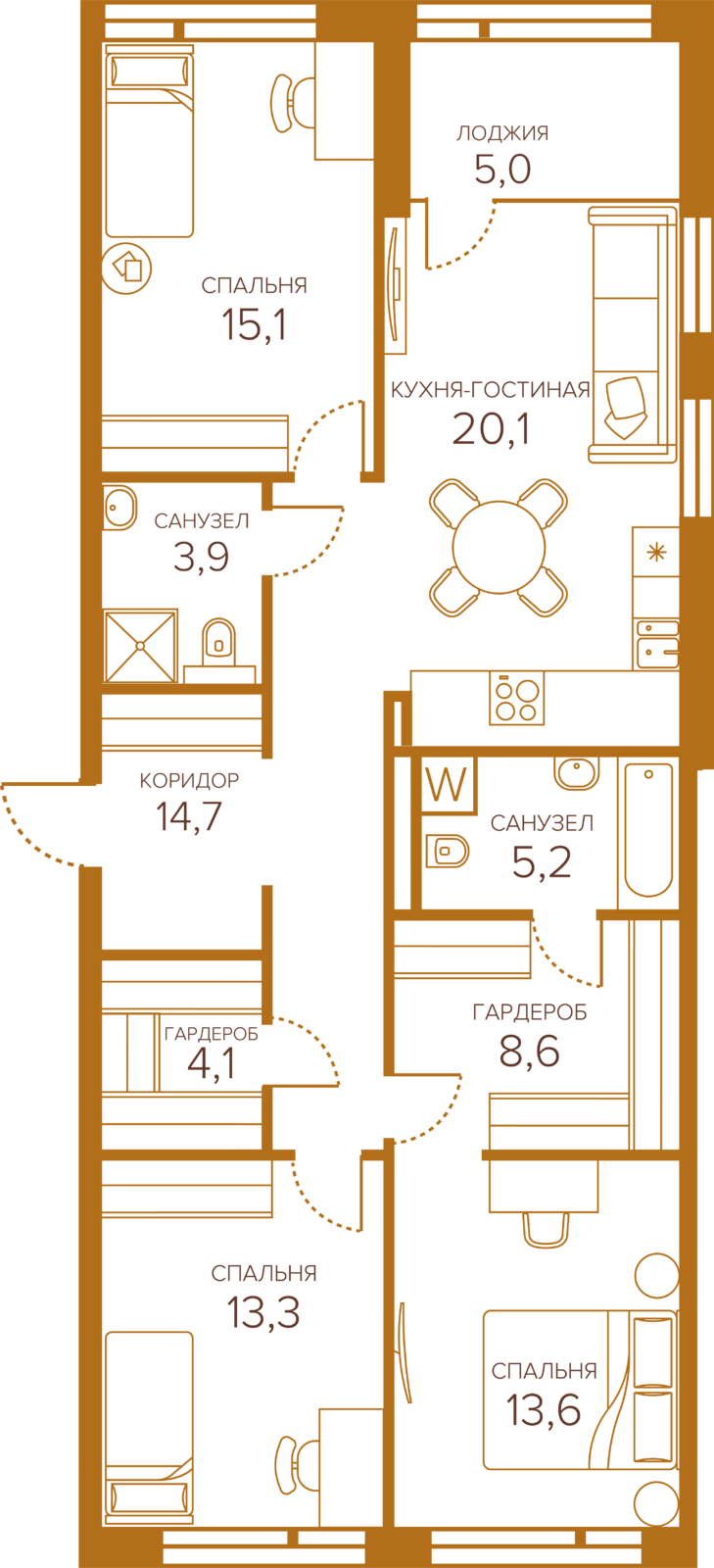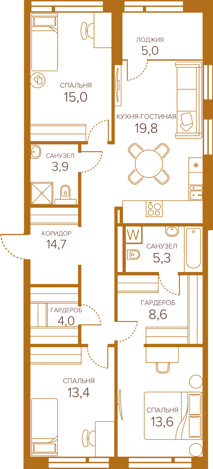Трехкомнатные квартиры в Дом Champine (Шампайн)
