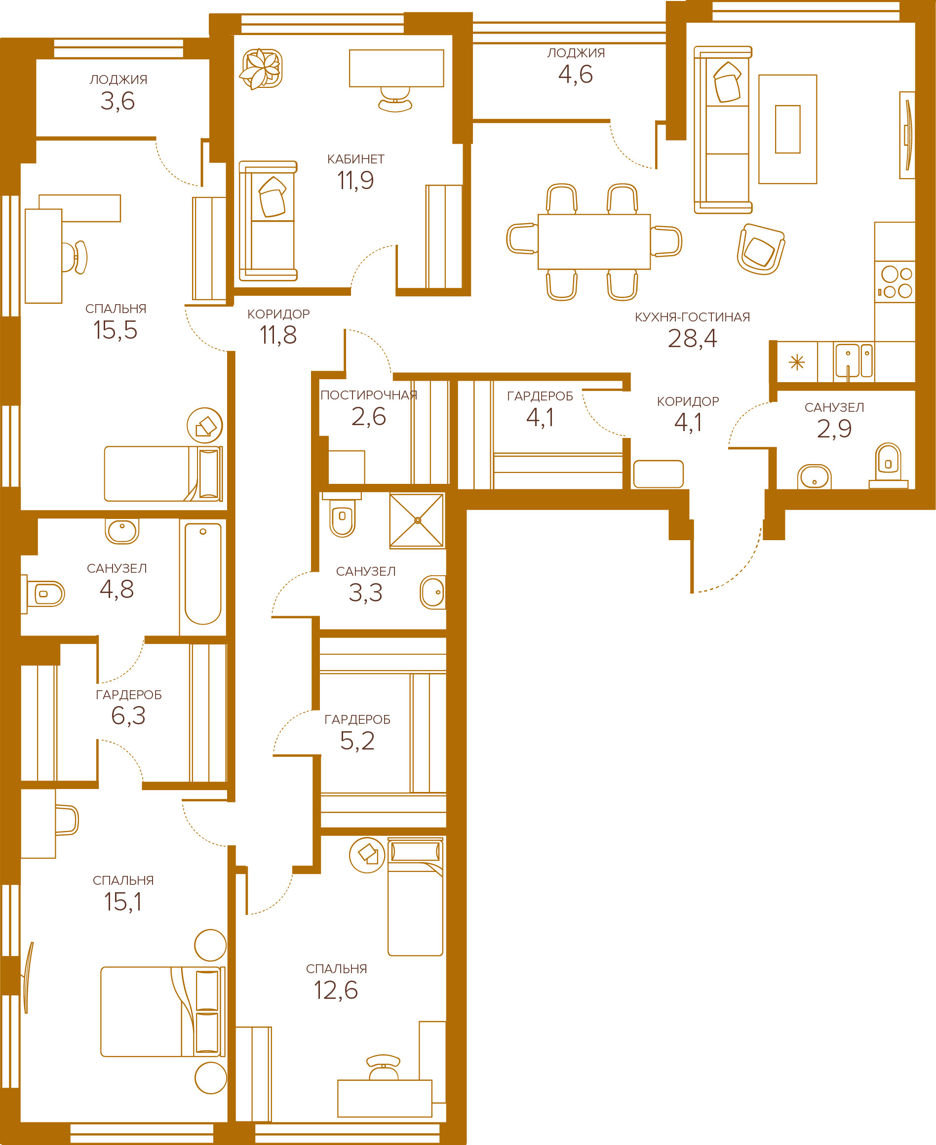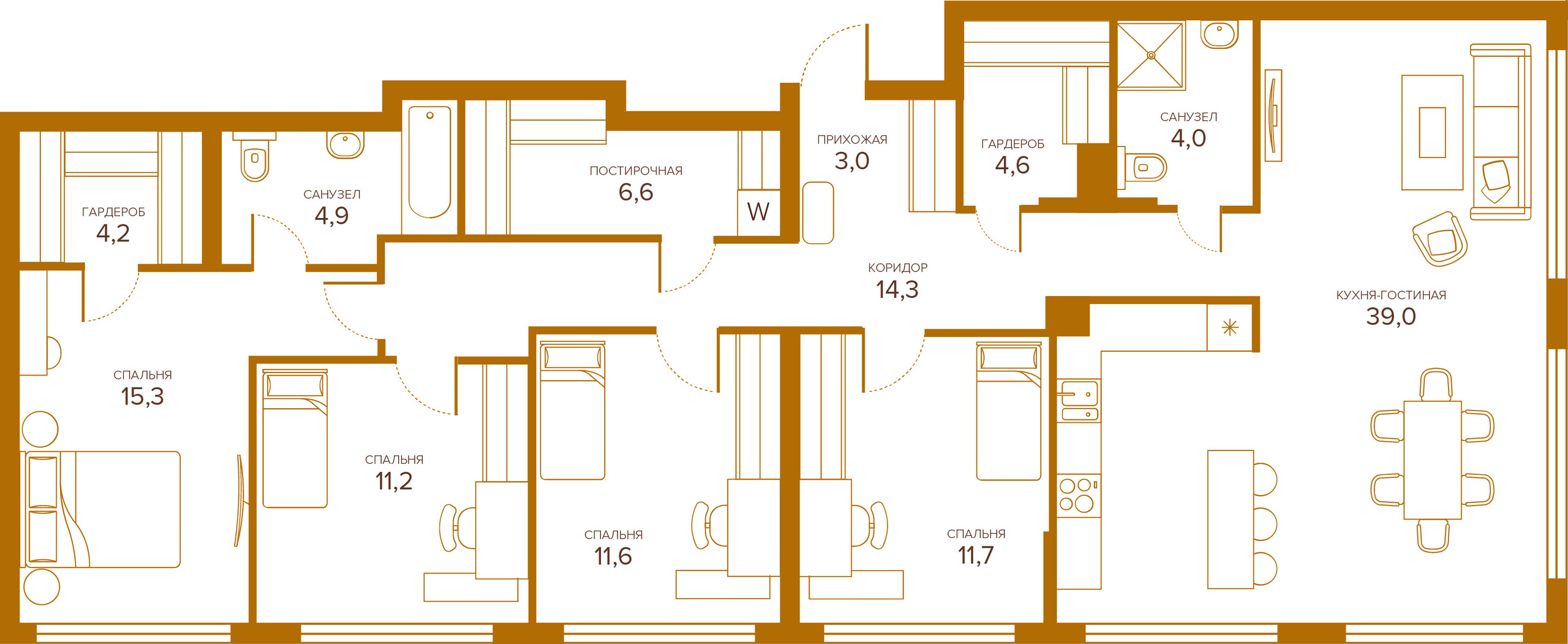 Четырехкомнатные квартиры в Дом Champine (Шампайн)