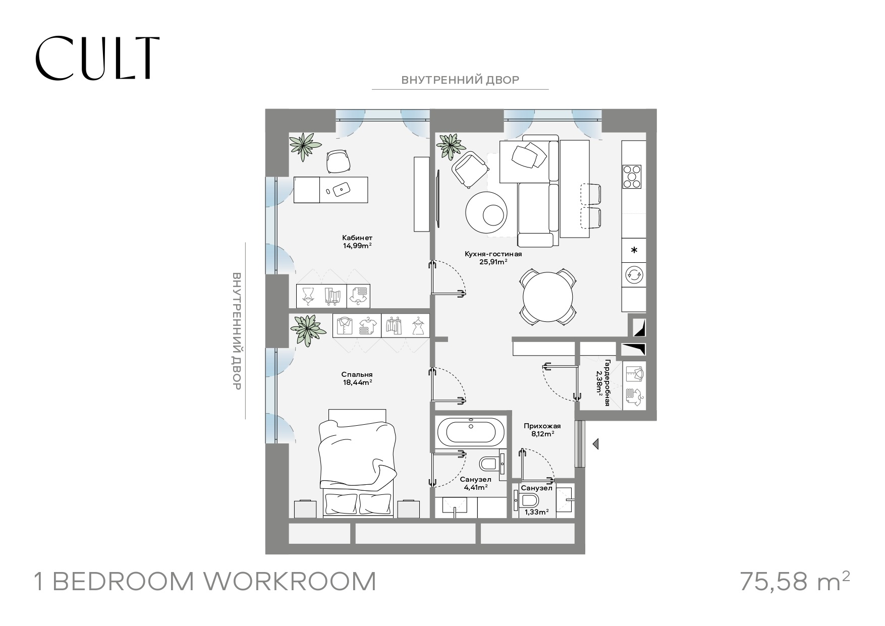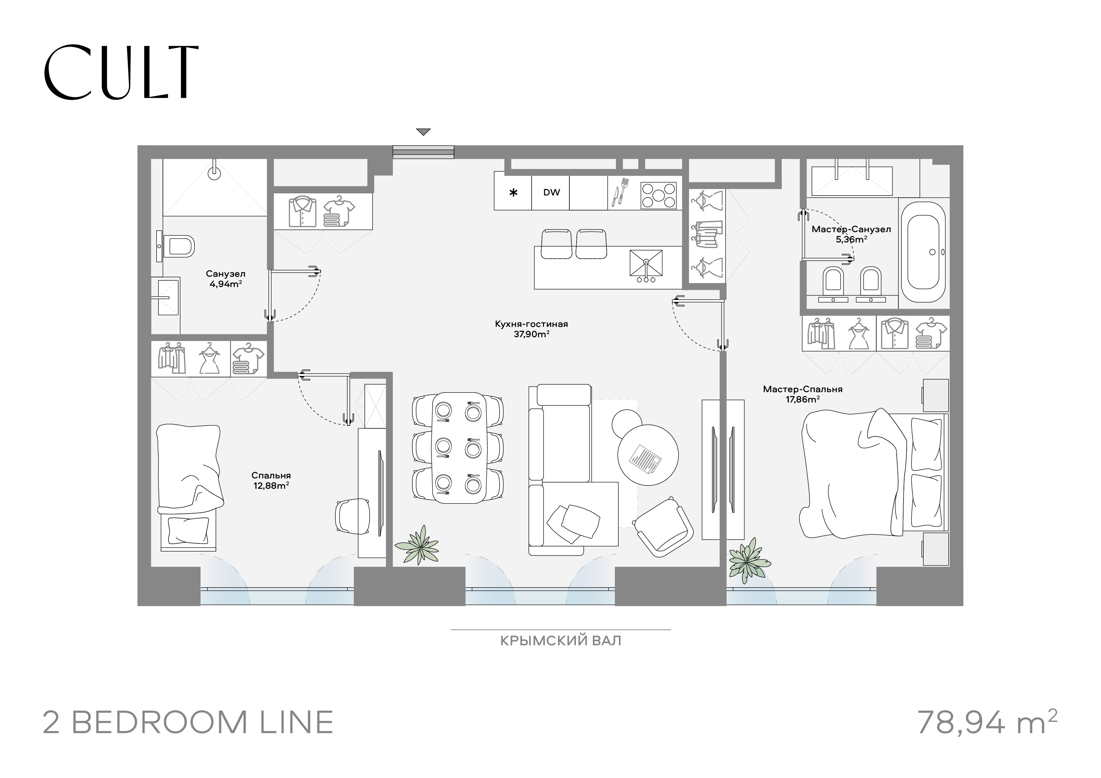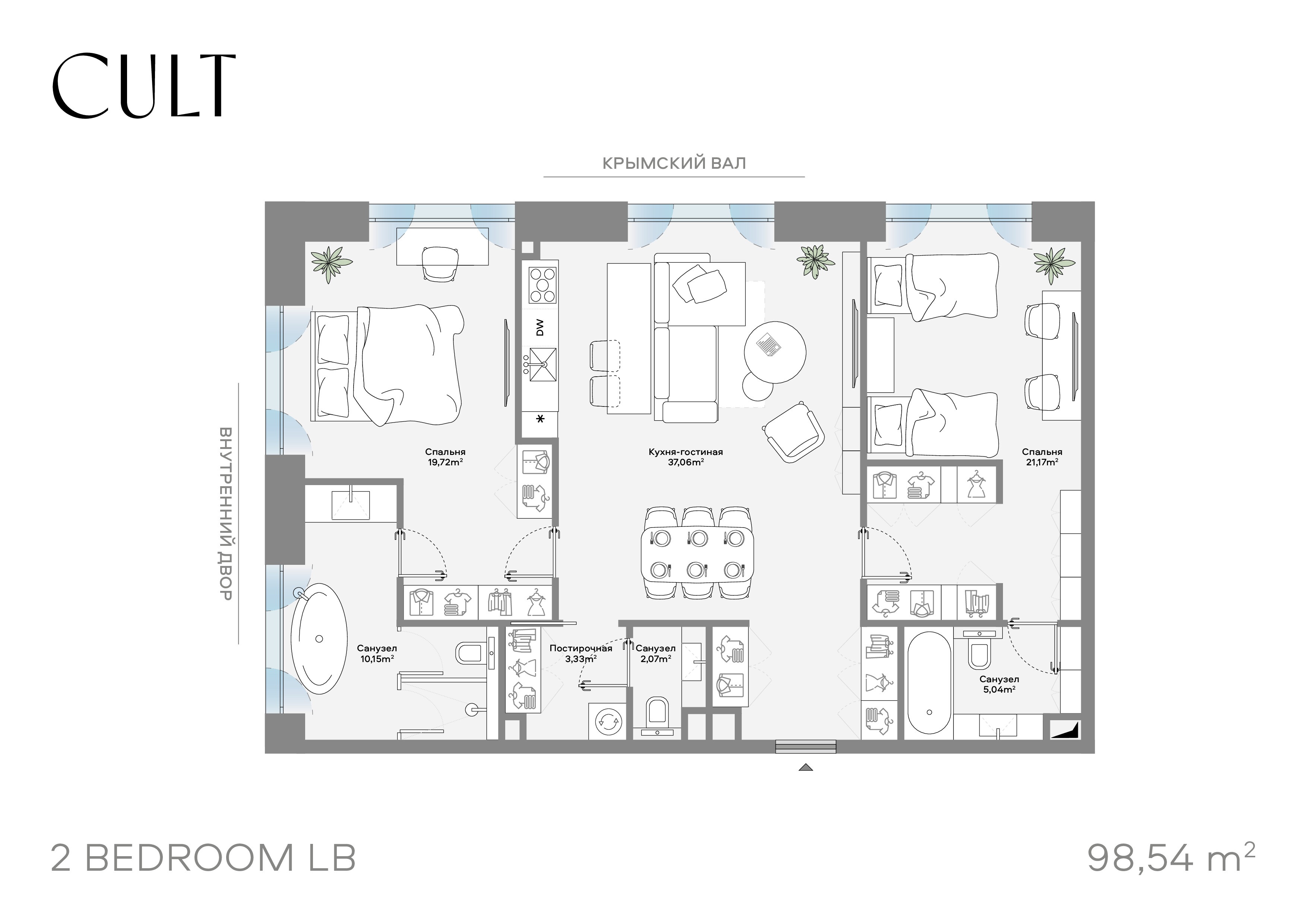 Двухкомнатные квартиры в Клубный дом CULT (Культ)