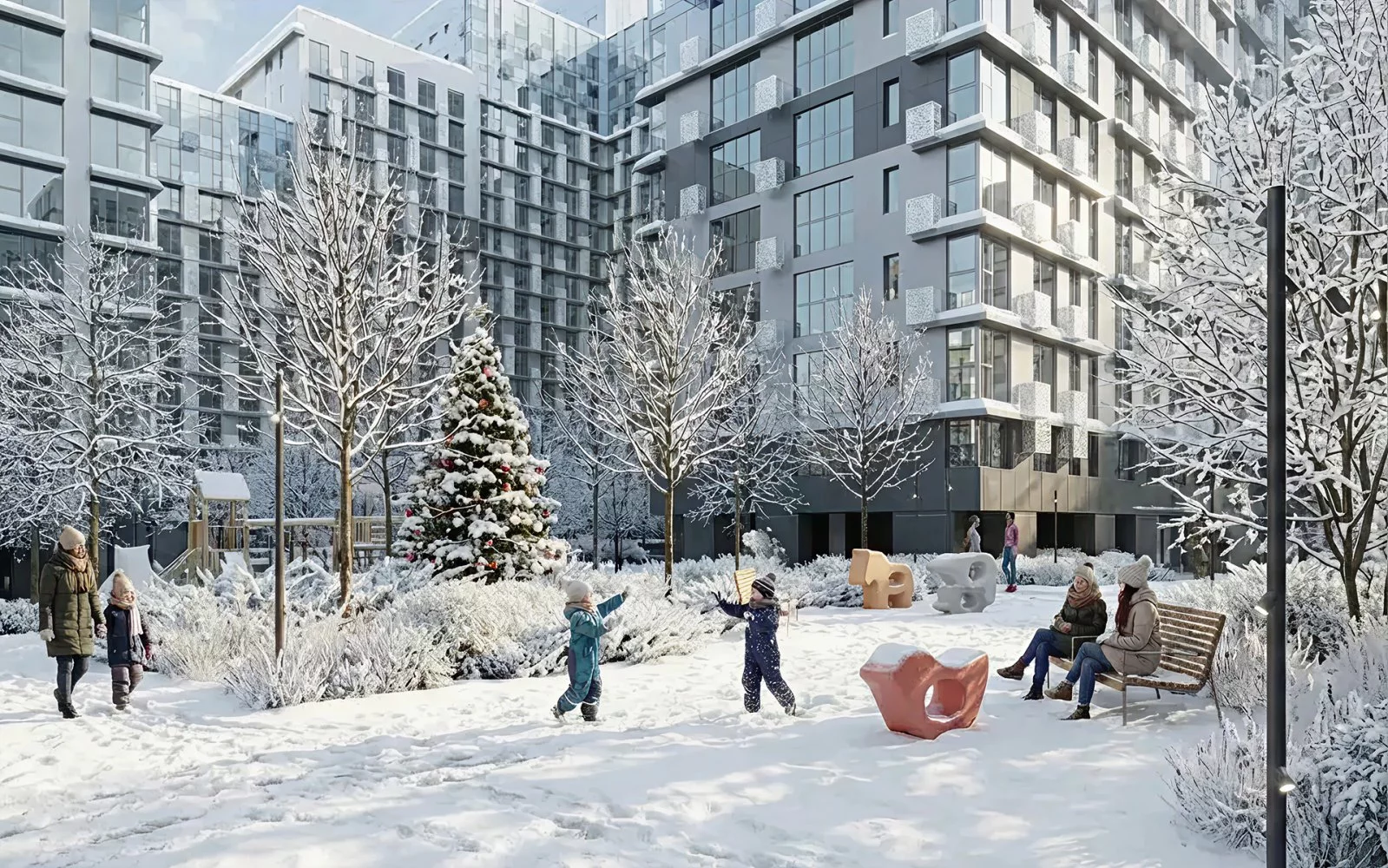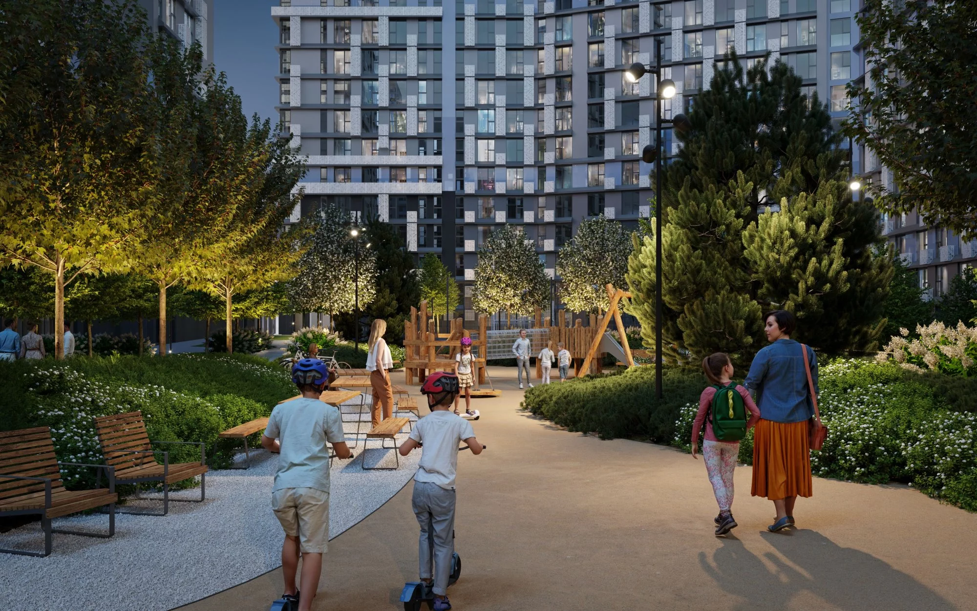Закрытая территория комплекса – двор-сад с приватными патио, спортивными зонами и детскими площадками станет местом силы и притяжения жителей, где можно будет насладиться окружением, интересно провести досуг и пообщаться с соседями. Заряжайтесь позитивом, поддерживайте здоровый образ жизни и будьте в центре событий.