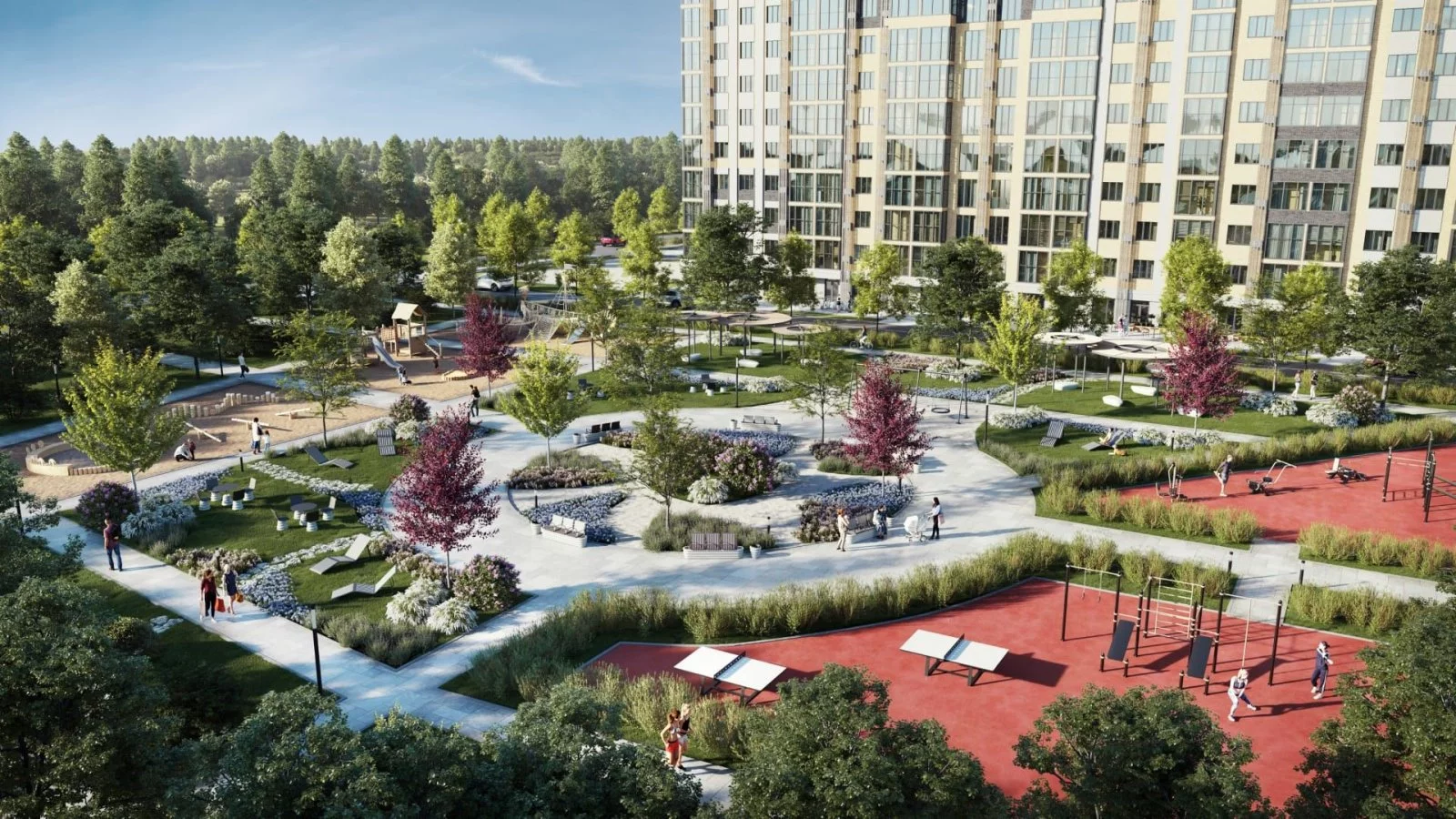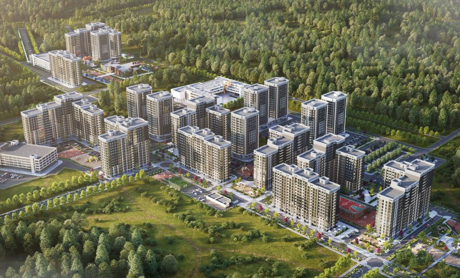 Опции, которые предлагает застройщик для проекта ЖК Долина: гостевая и многоуровневая парковки, детские и спортивные площадки, коммерческие помещения на первом этаже, закрытый двор без машин, видеонаблюдение.