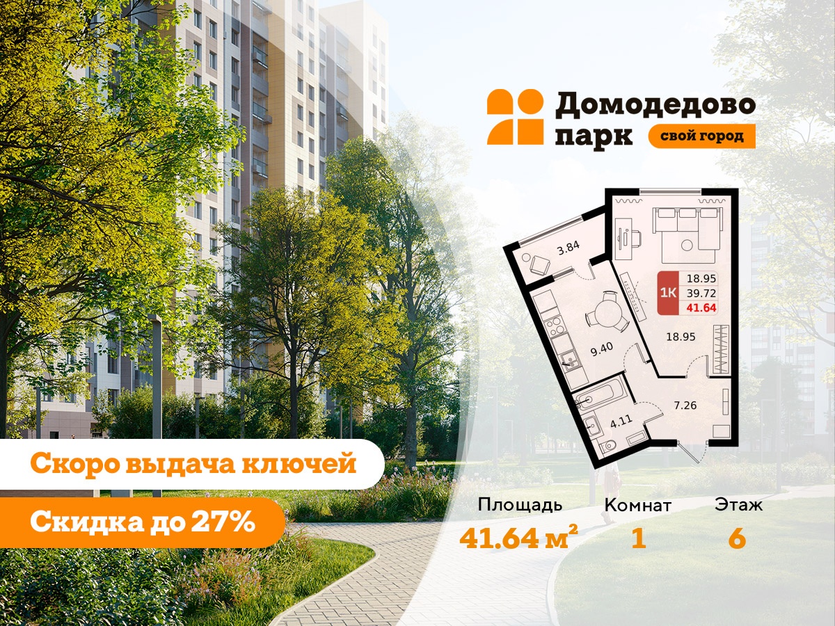 Однокомнатные квартиры в ЖК «ДОМодедово Парк»