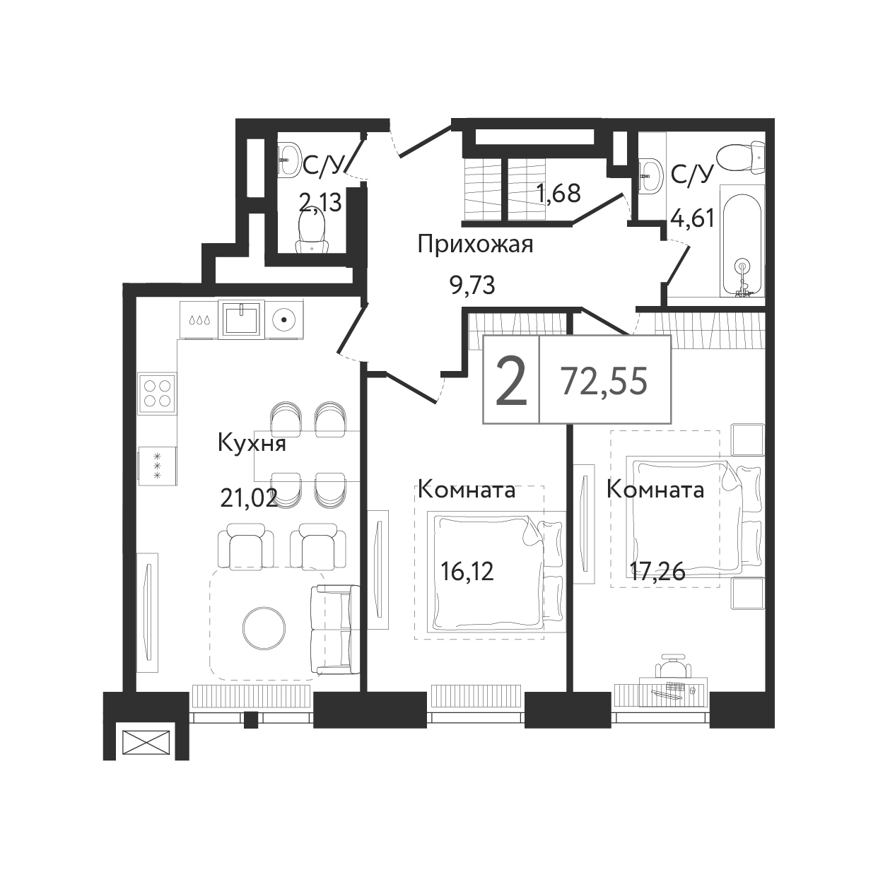 - Цена за м2 611 213 руб
