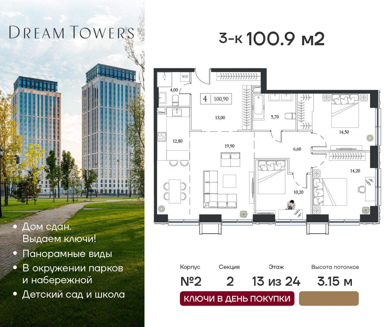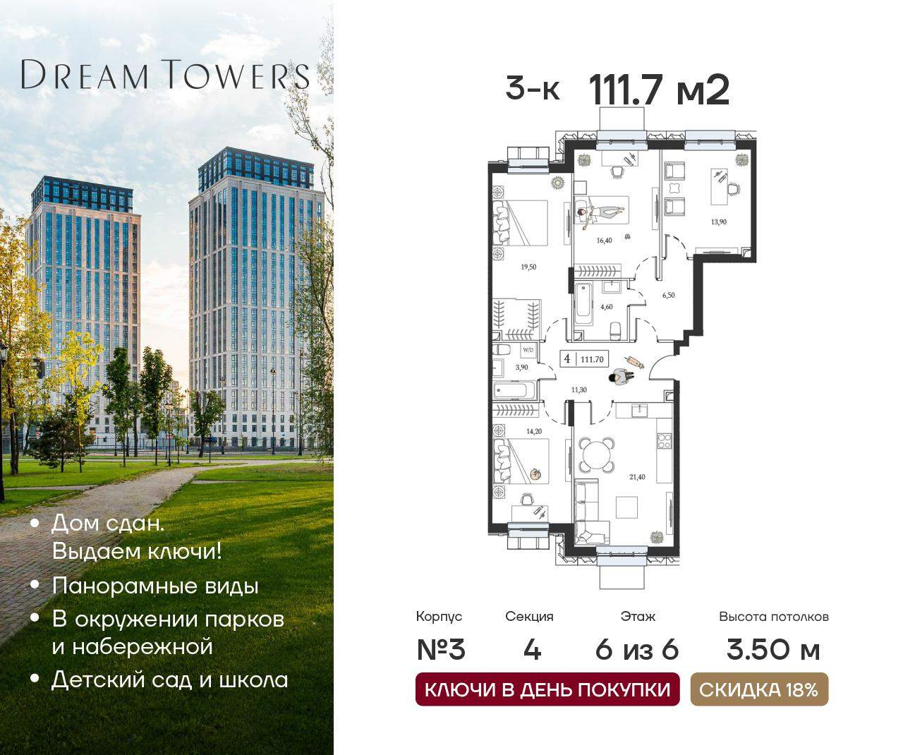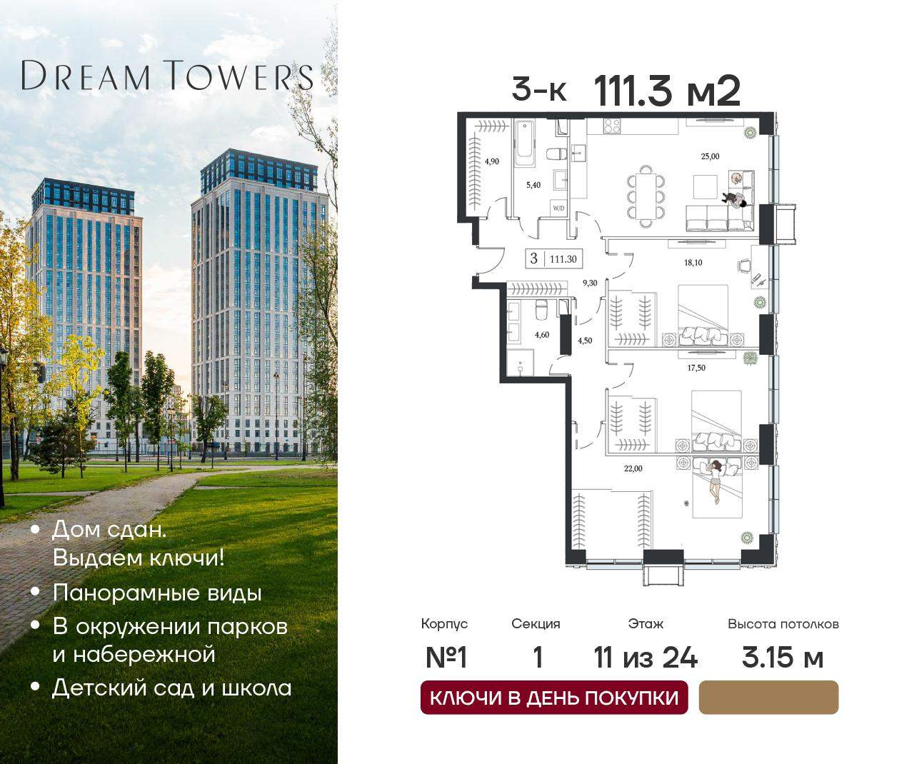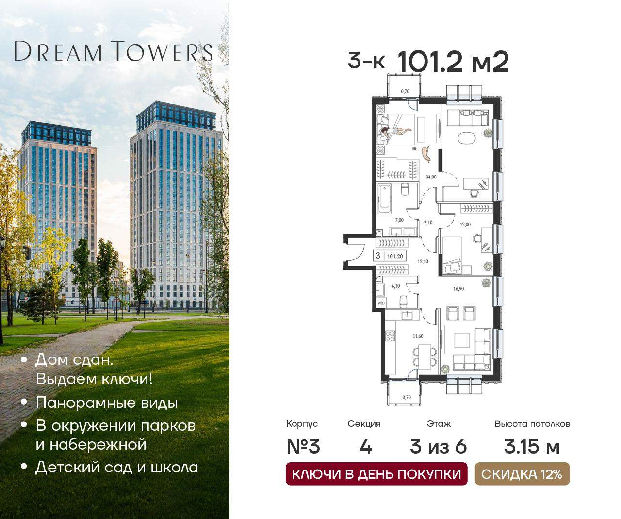 Трехкомнатные квартиры в ЖК Dream Towers (Дрим Тауэрс) - страница 2