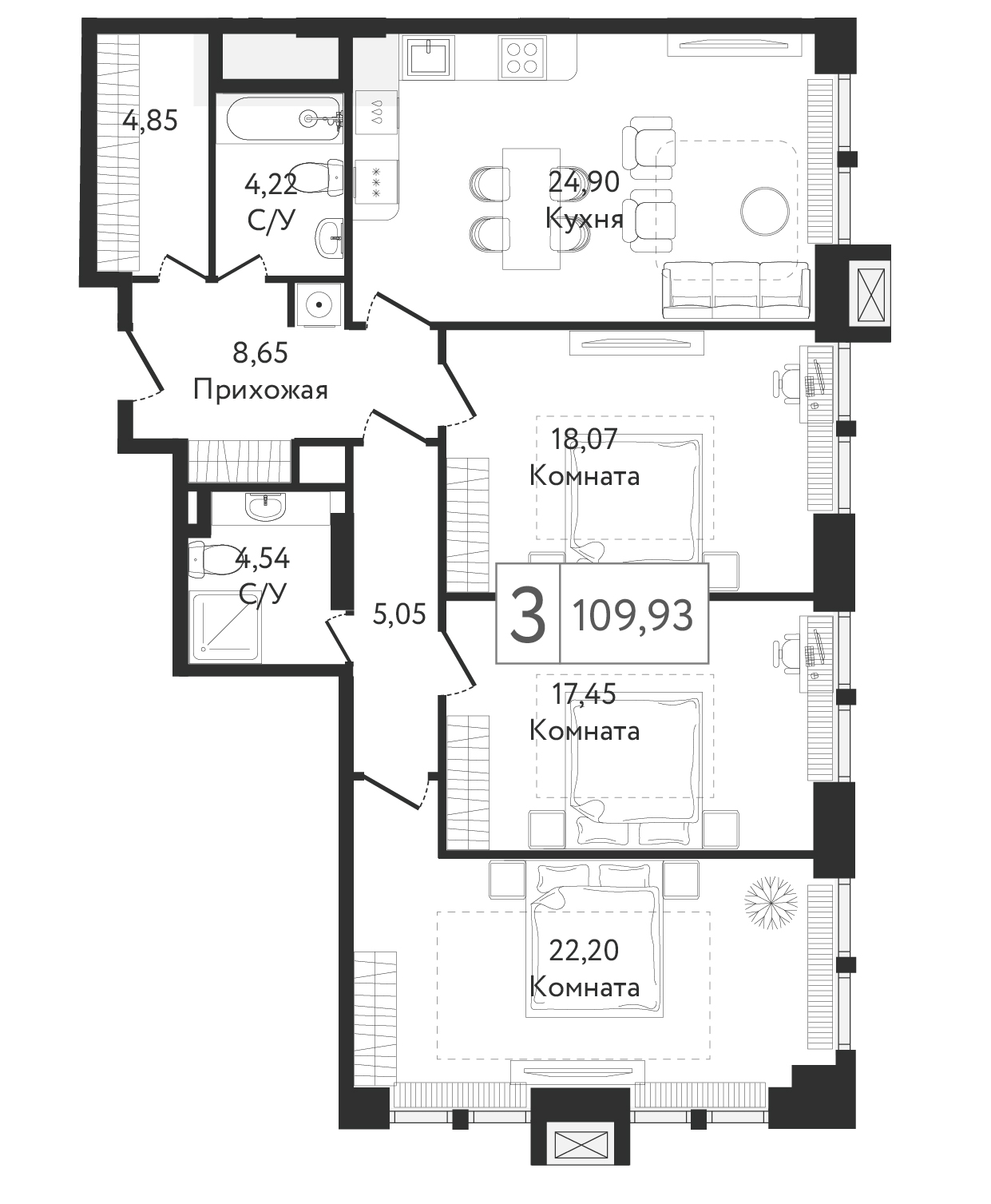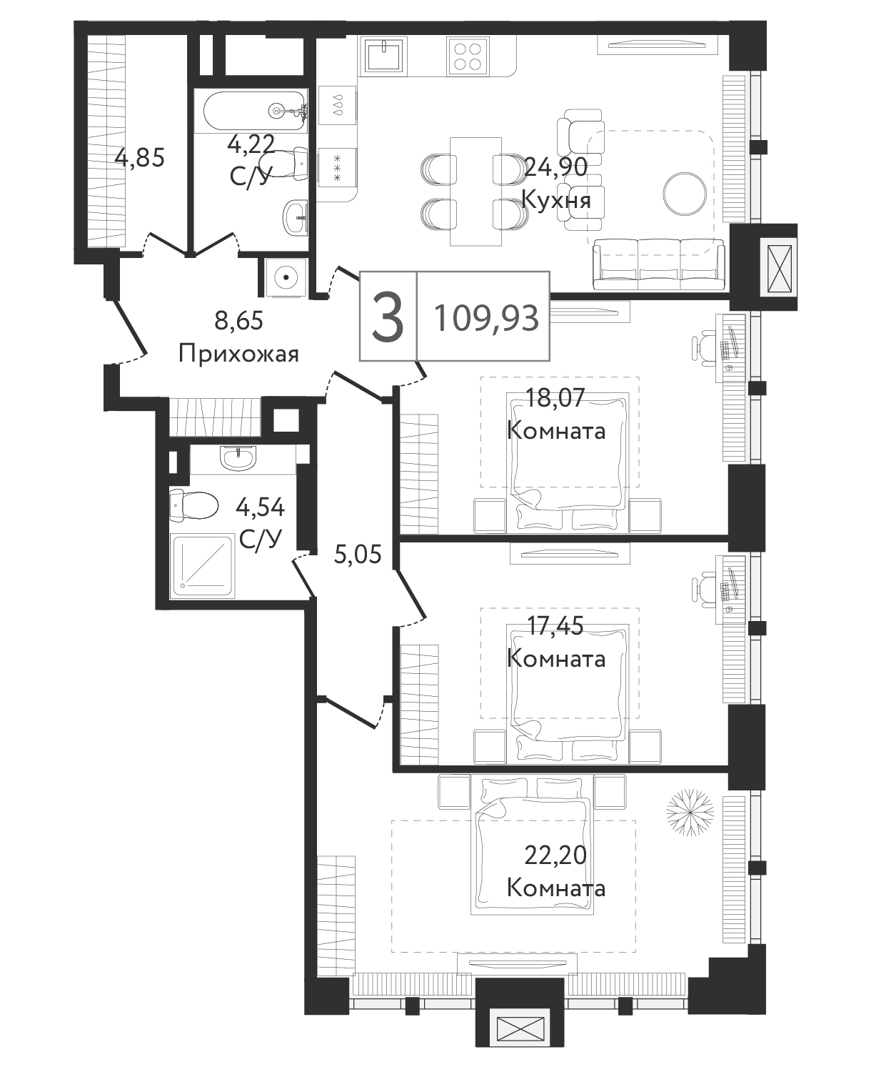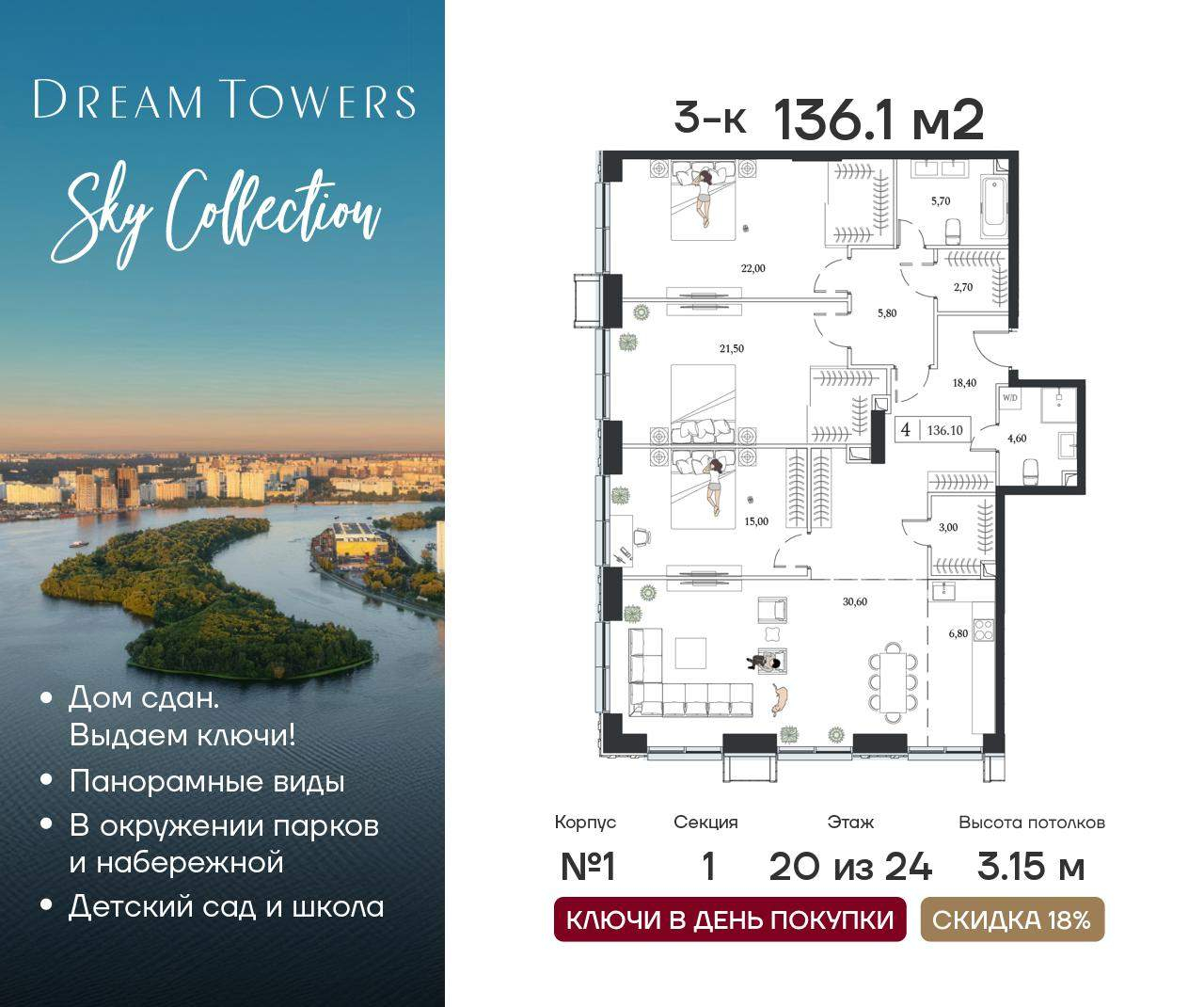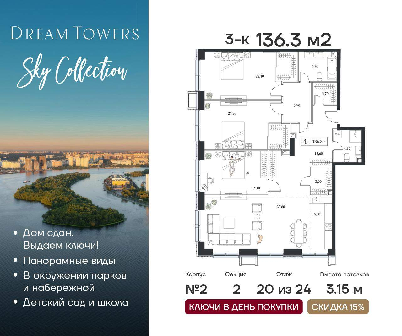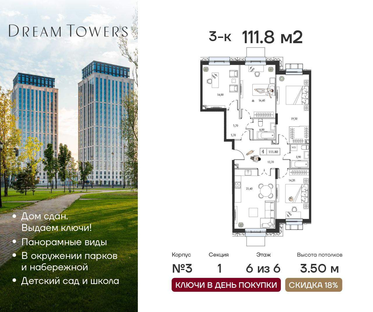 Трехкомнатные квартиры в ЖК Dream Towers (Дрим Тауэрс) - страница 2