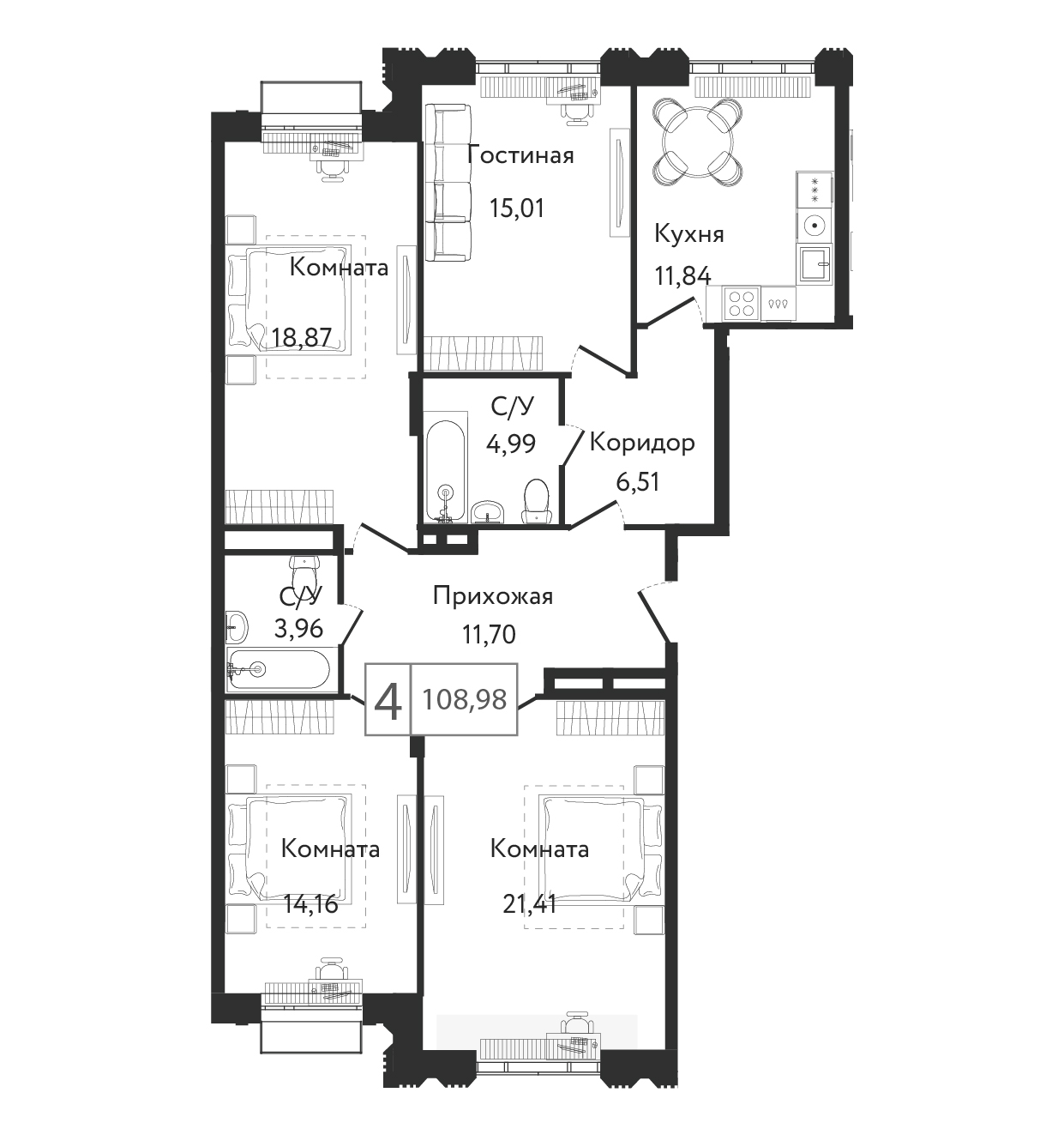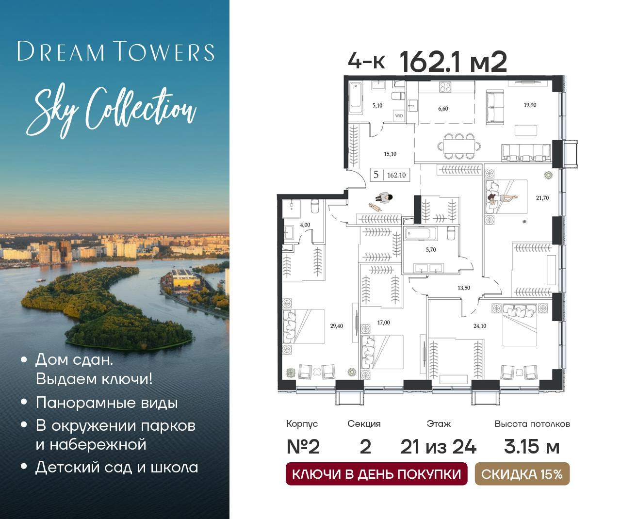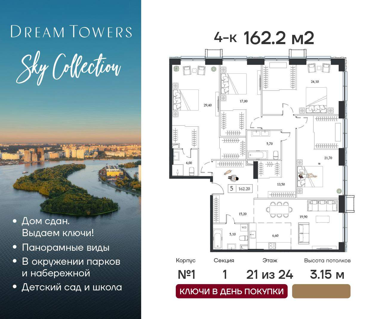 Четырехкомнатные квартиры в ЖК Dream Towers (Дрим Тауэрс)