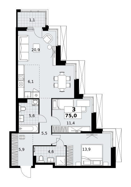 Трехкомнатные квартиры в ЖК Дзен-кварталы - страница 2