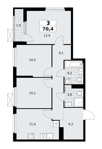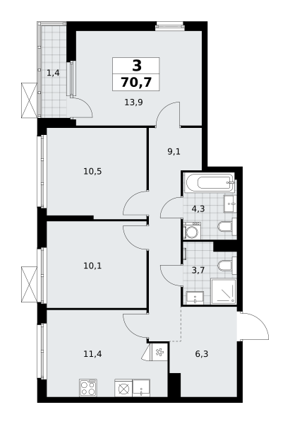 Трехкомнатные квартиры в ЖК Дзен-кварталы