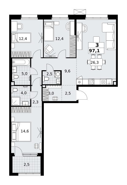 Евро трехкомнатные квартиры в ЖК Дзен-кварталы