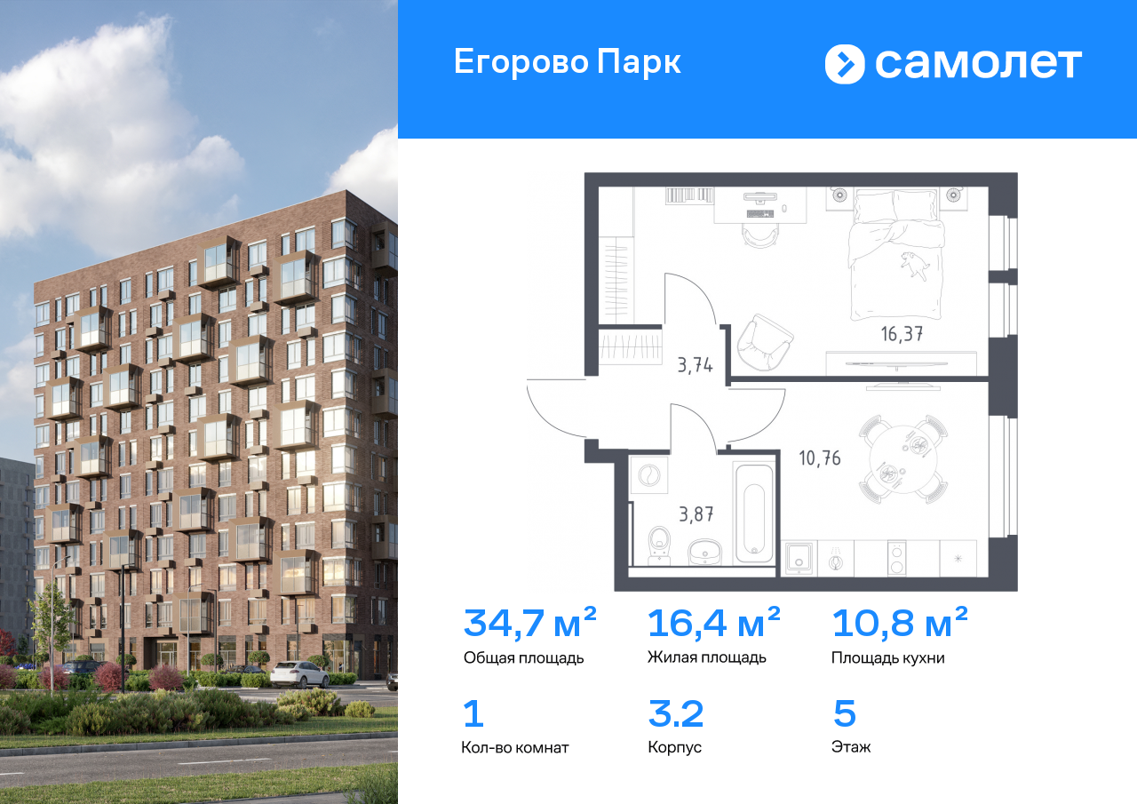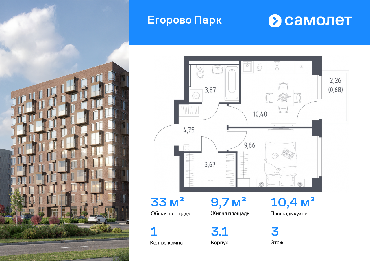 Однокомнатные квартиры в ЖК «Егорово Парк»