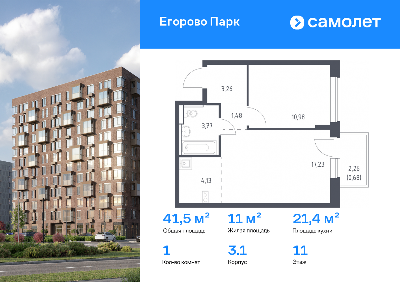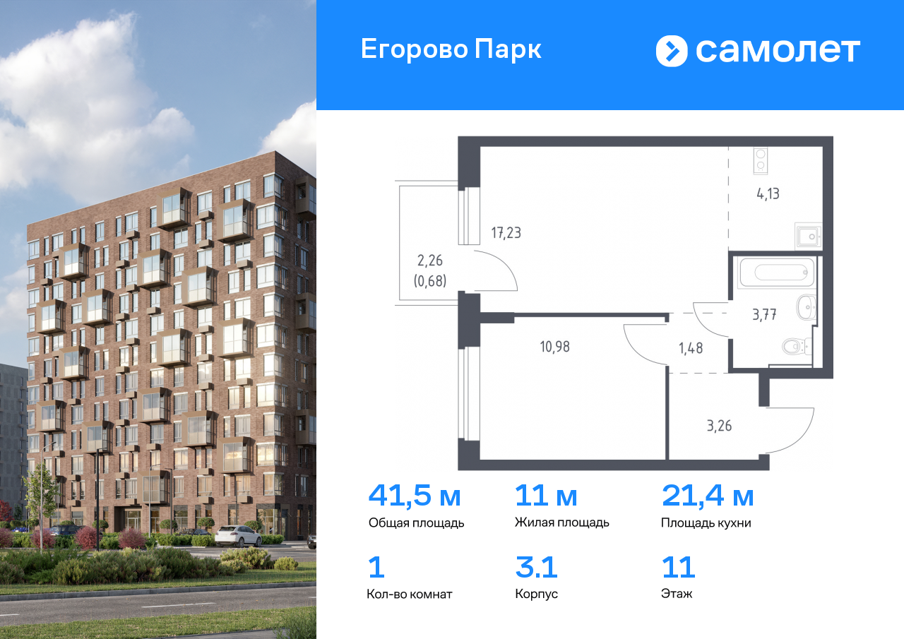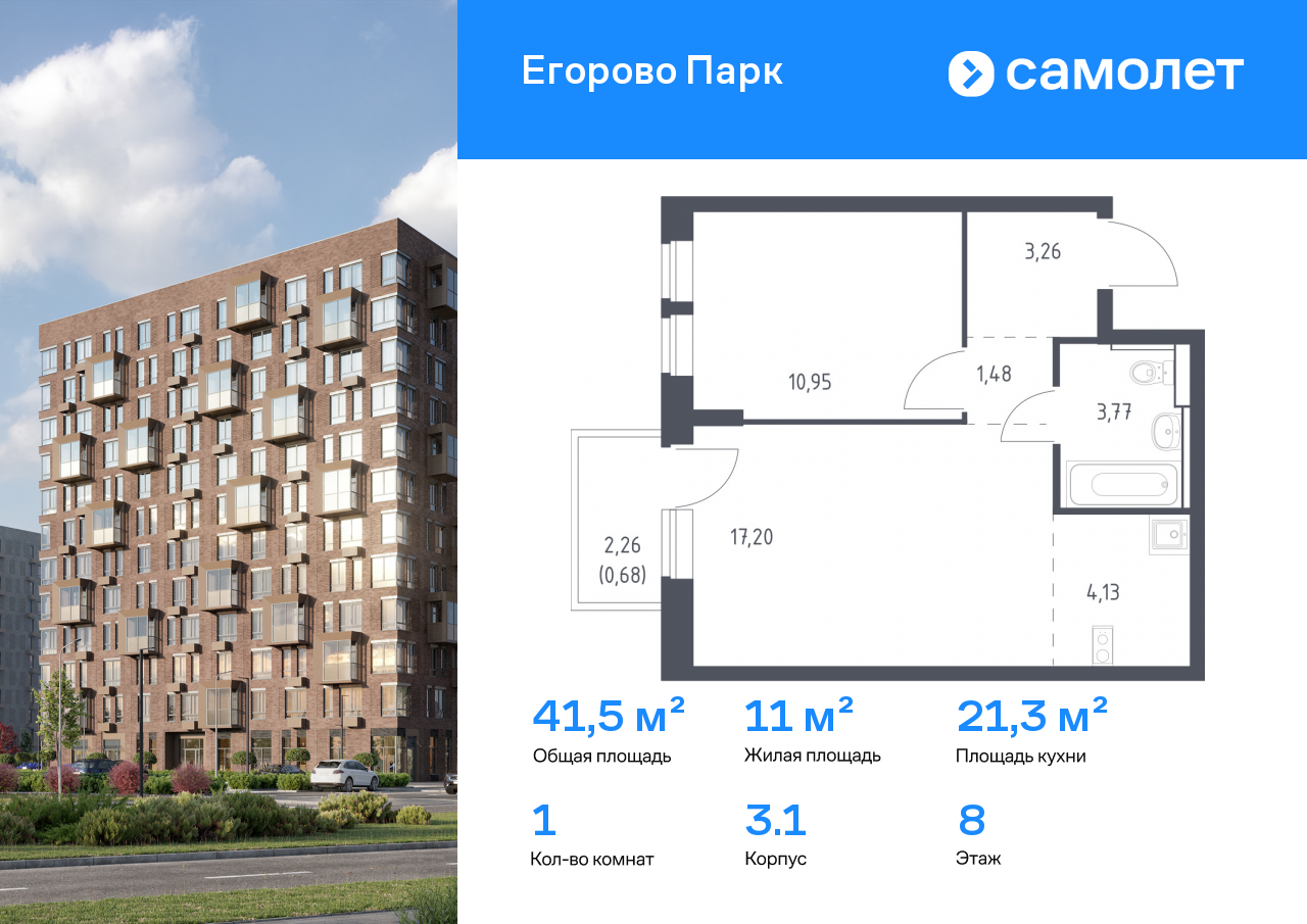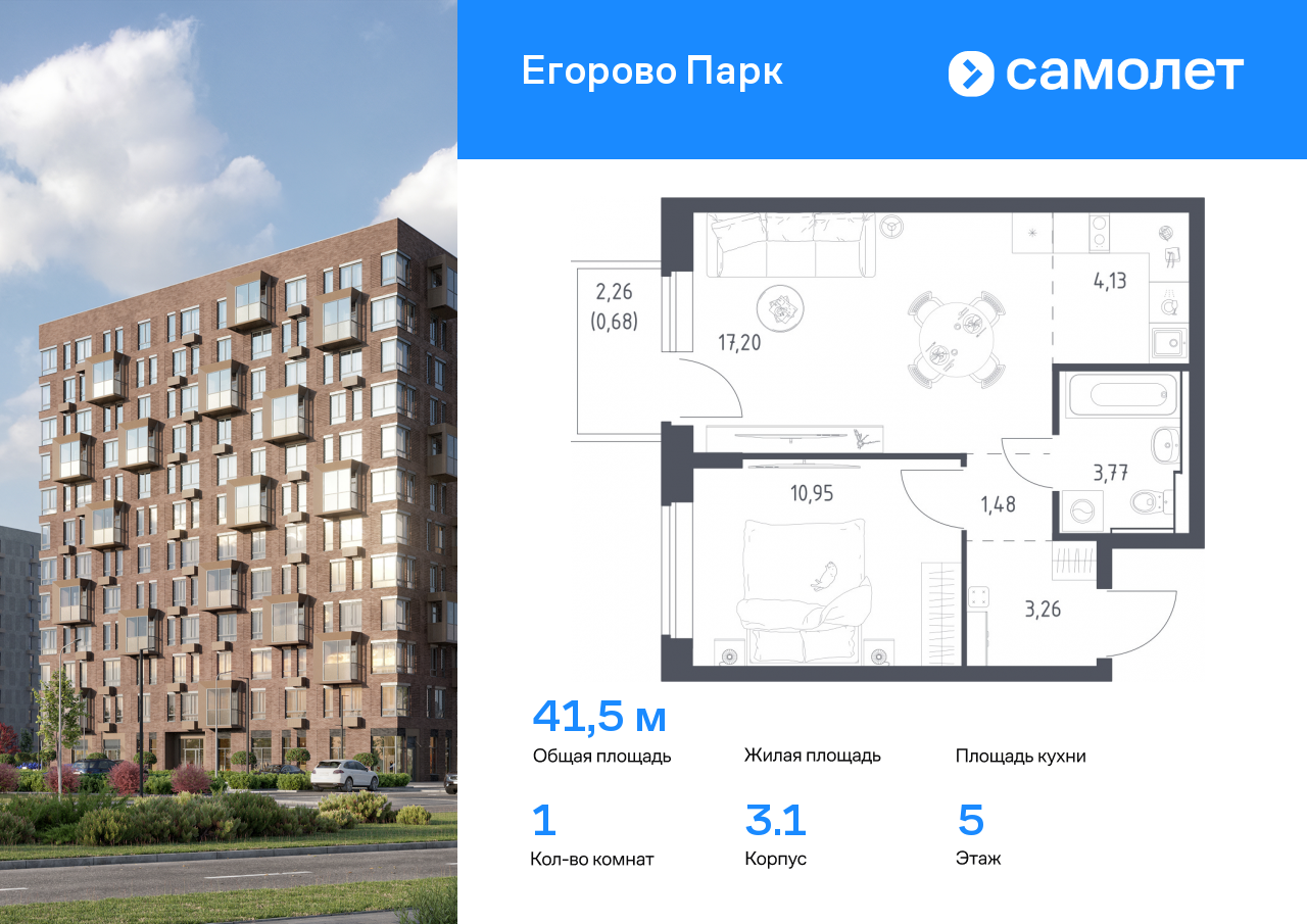 Евро однокомнатные квартиры в ЖК «Егорово Парк»