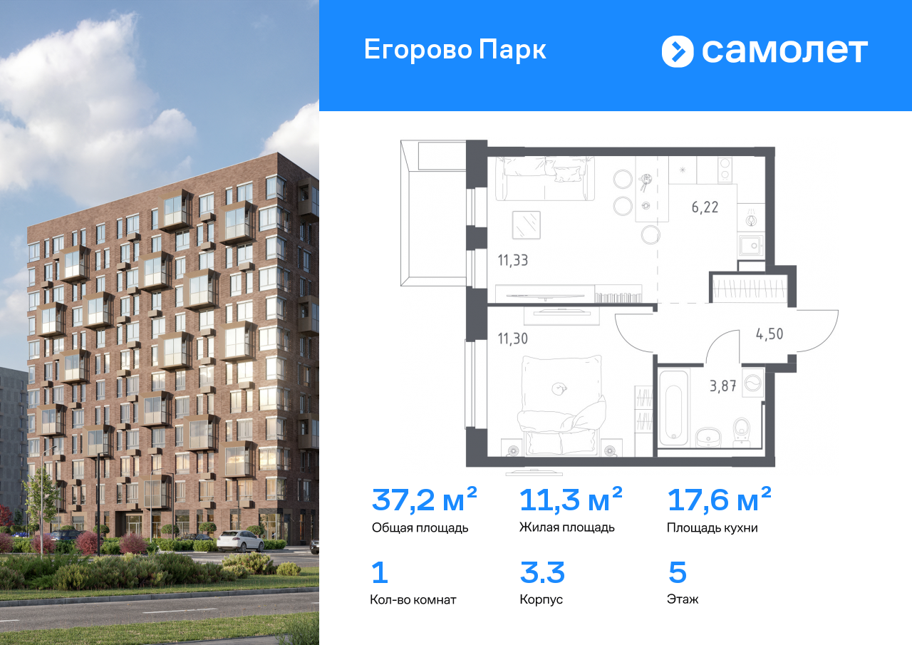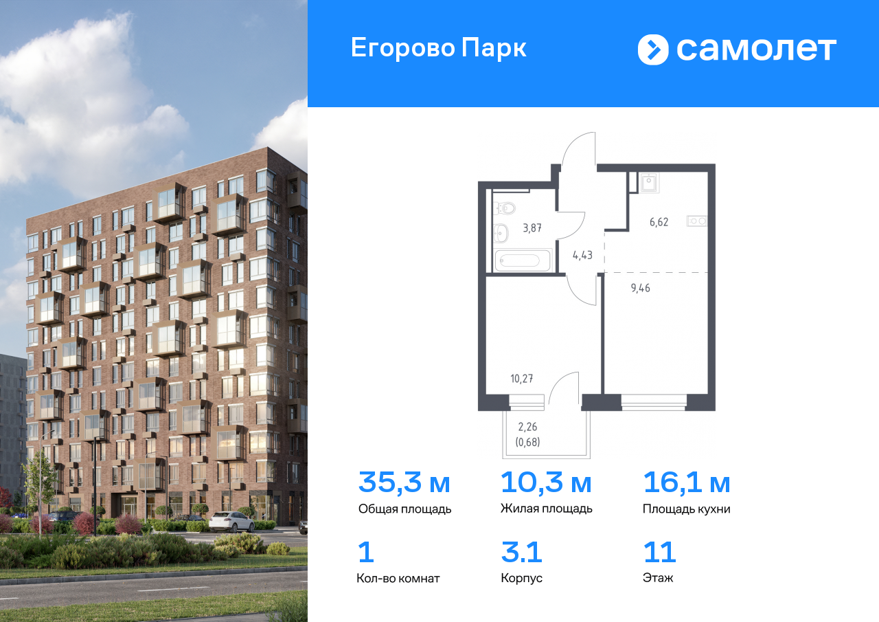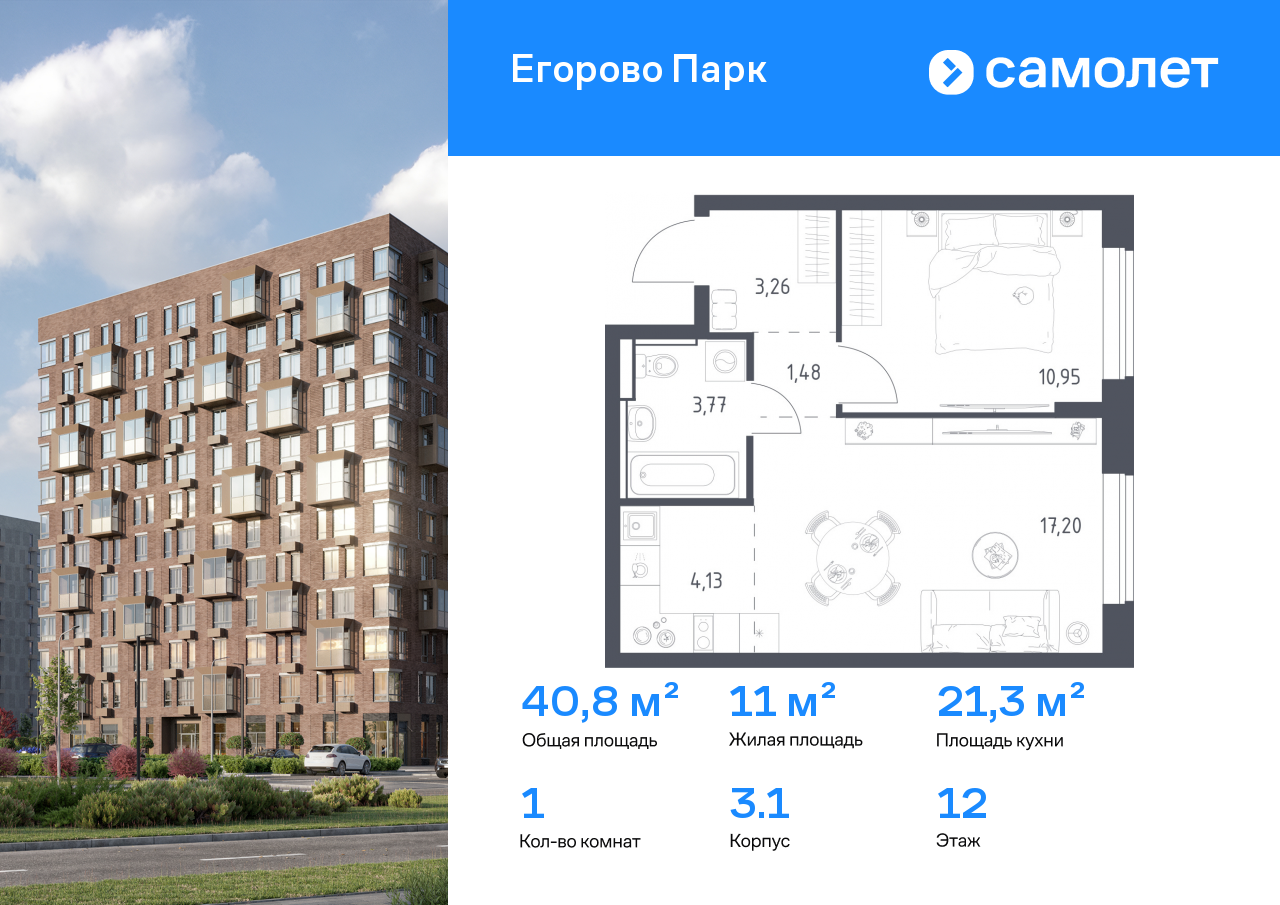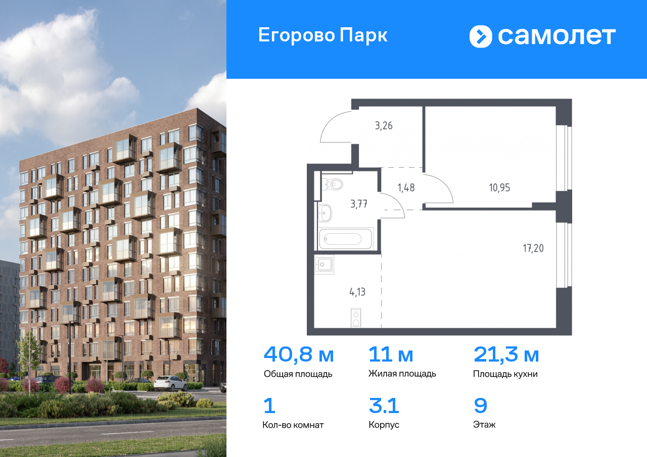 Евро однокомнатные квартиры в ЖК «Егорово Парк»