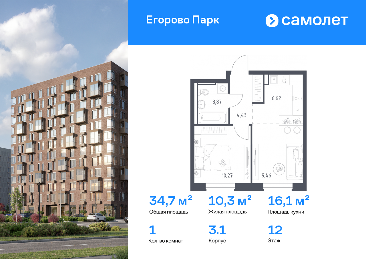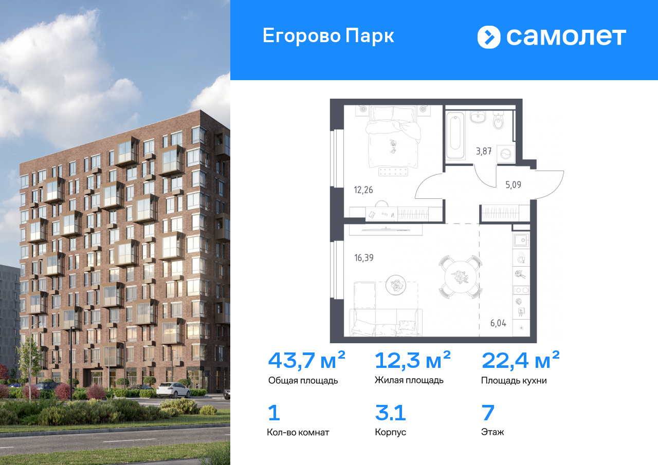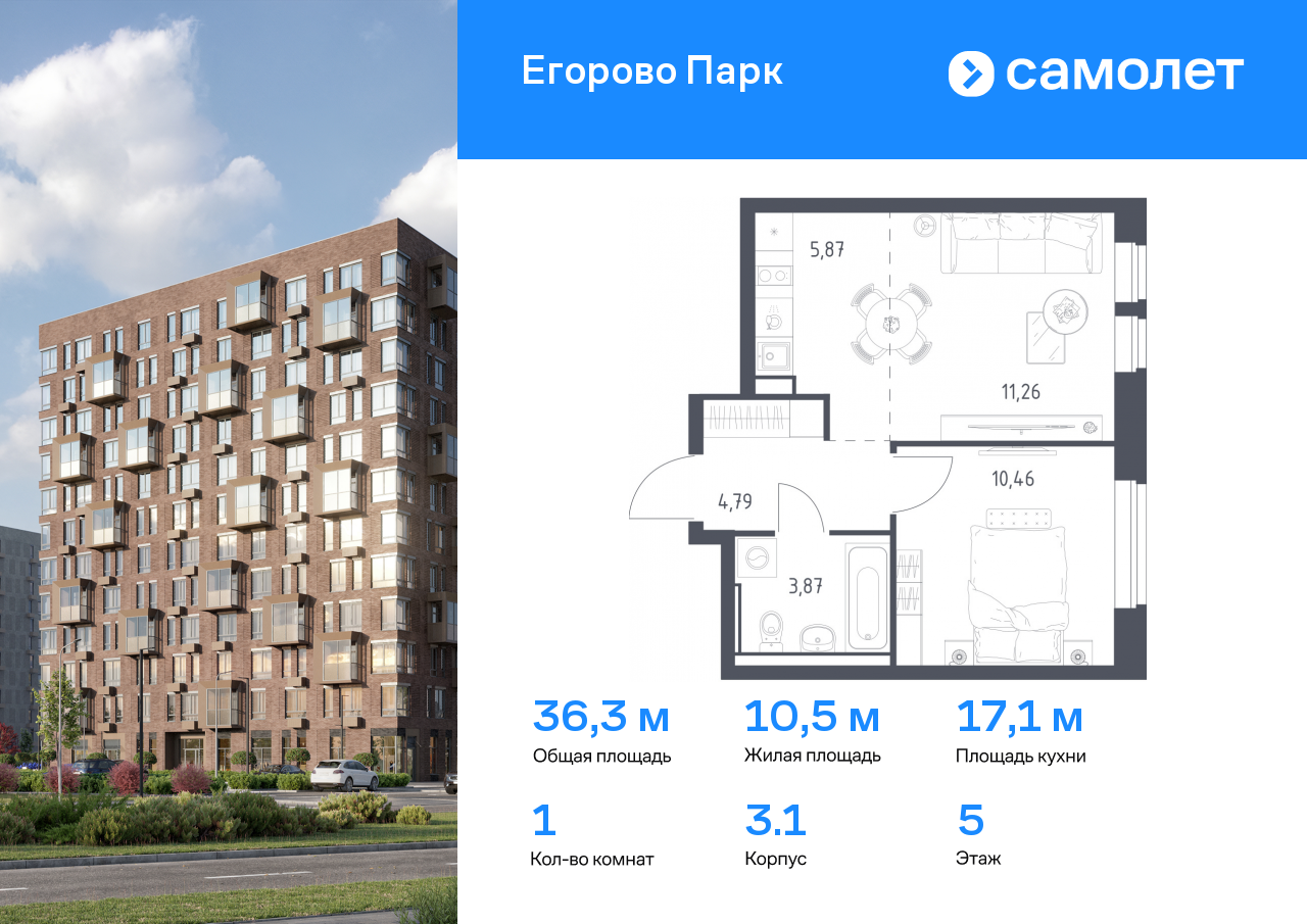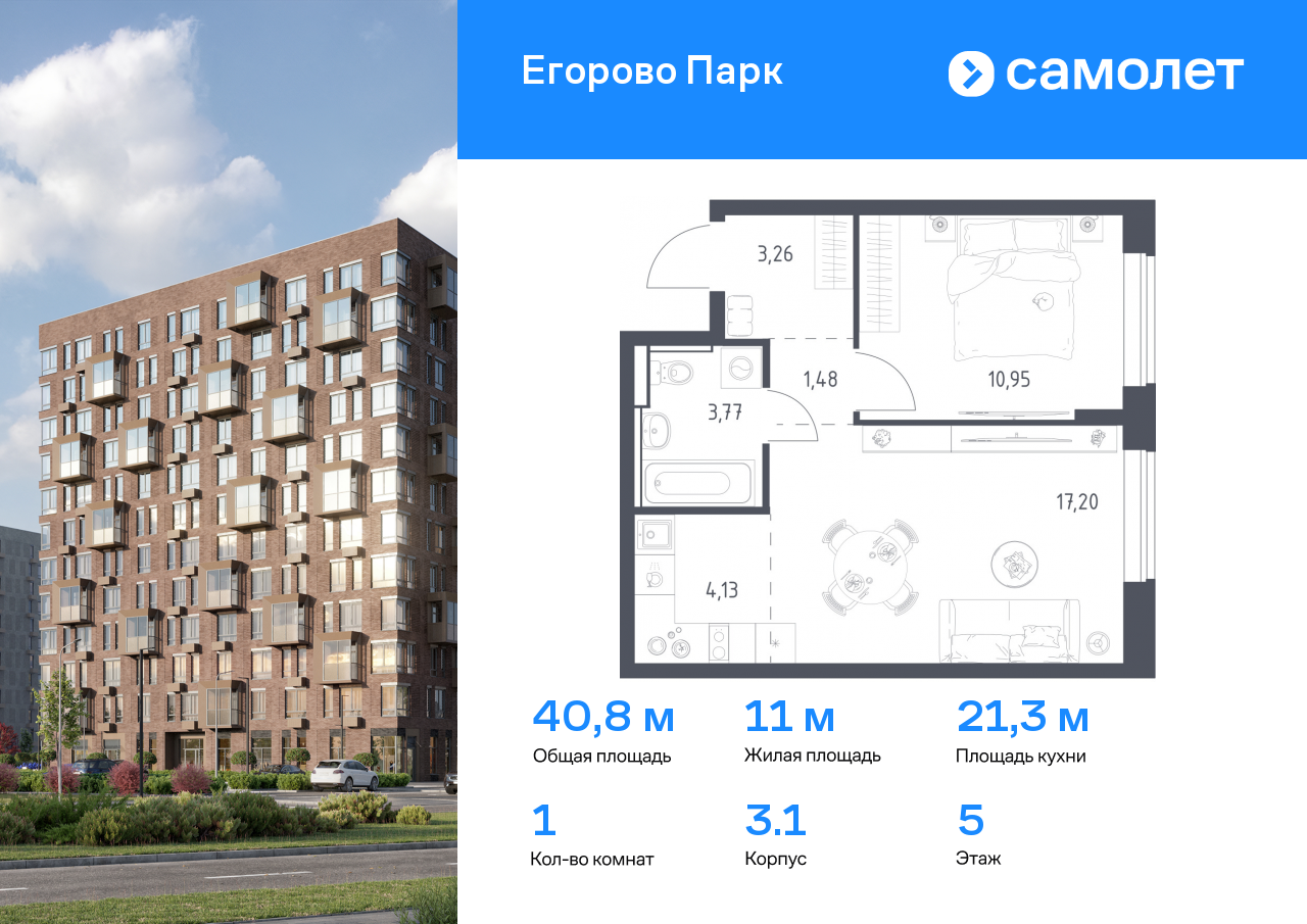Евро однокомнатные квартиры в ЖК «Егорово Парк»