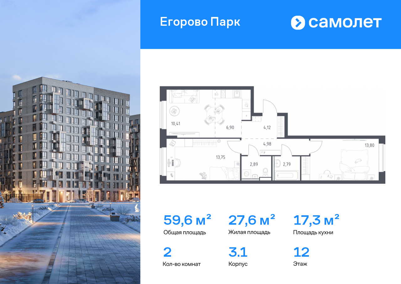 Евро двухкомнатные квартиры в ЖК «Егорово Парк»