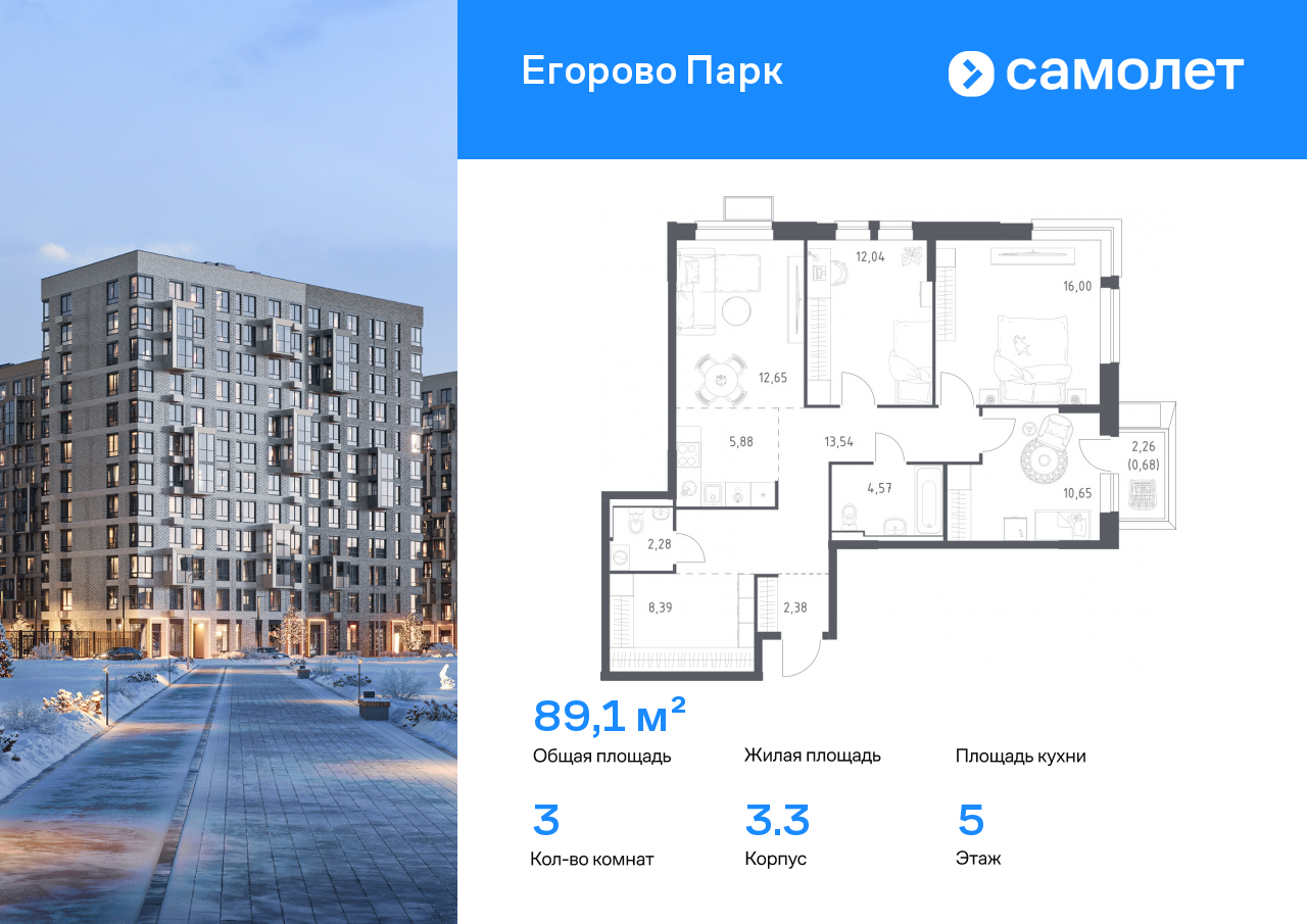 Евро трехкомнатные квартиры в ЖК «Егорово Парк»