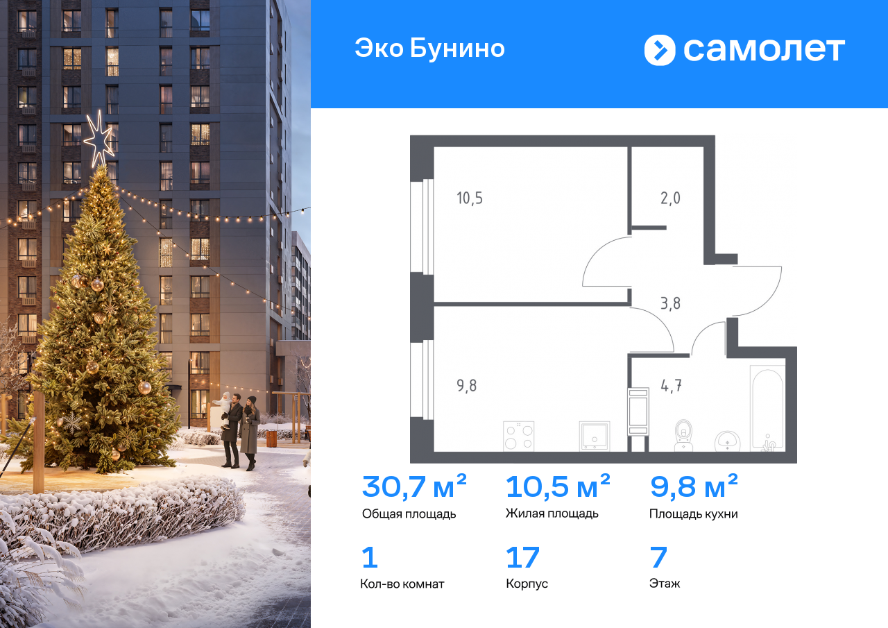 Однокомнатные квартиры в ЖК «Эко Бунино»