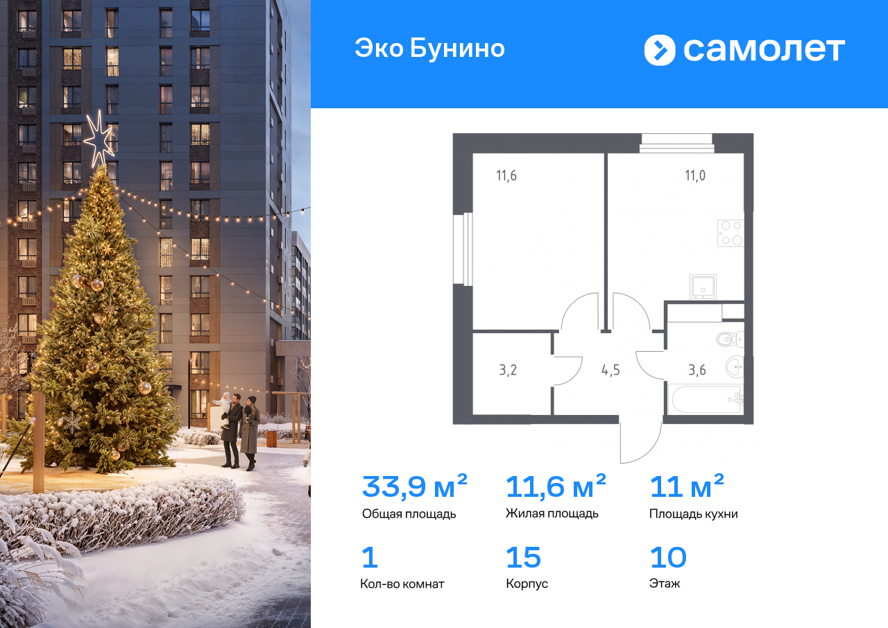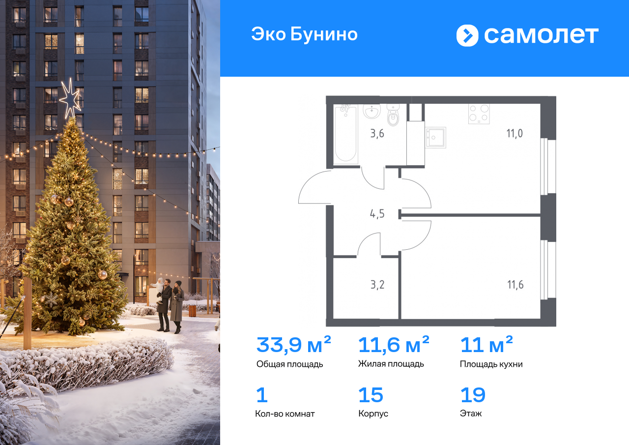 Однокомнатные квартиры в ЖК «Эко Бунино»