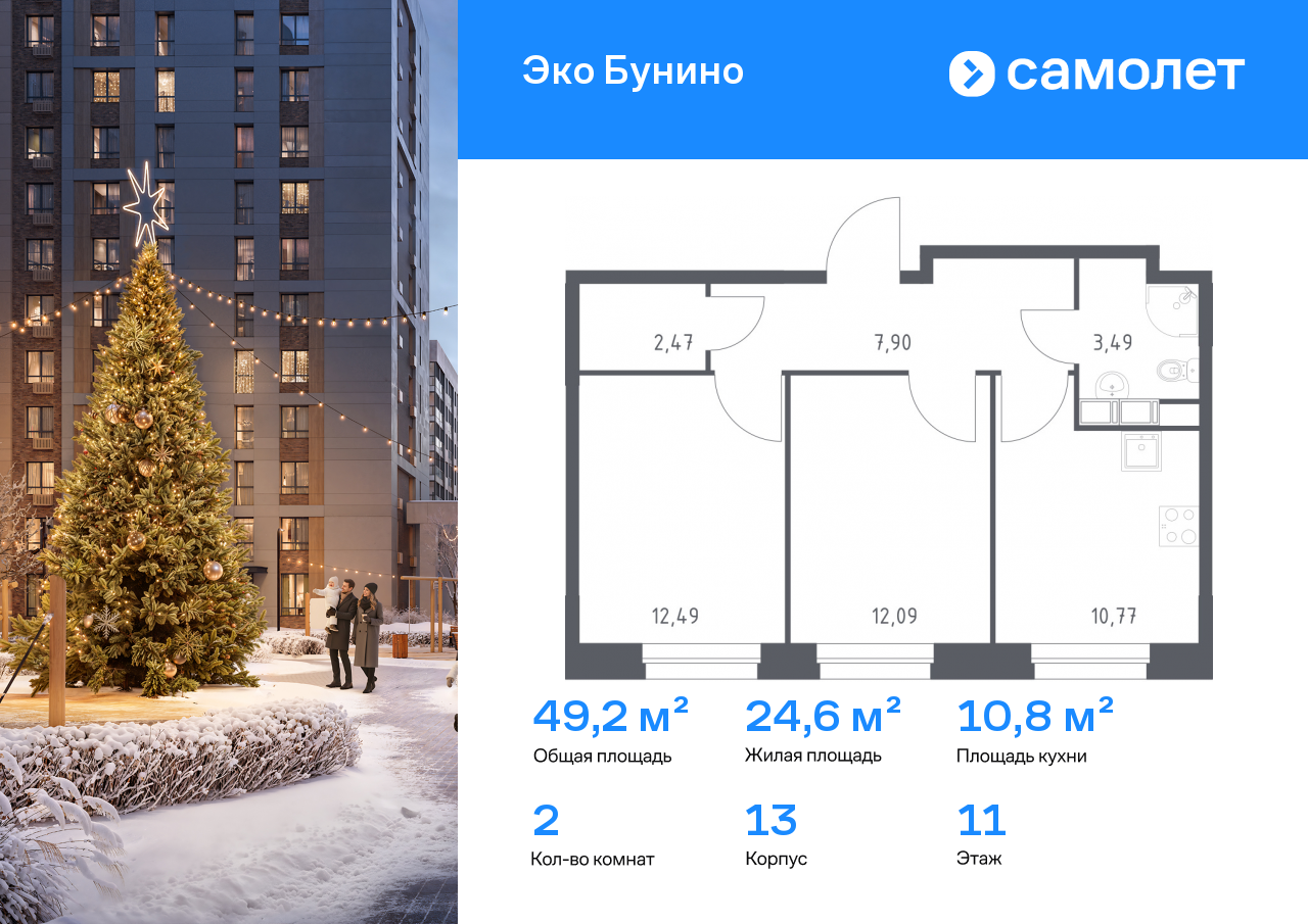 Двухкомнатные квартиры в ЖК «Эко Бунино»