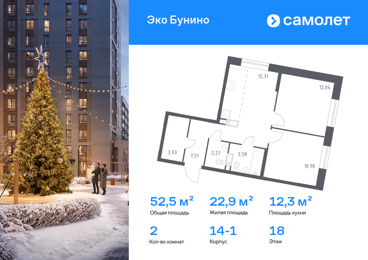 Двухкомнатные квартиры в ЖК «Эко Бунино»
