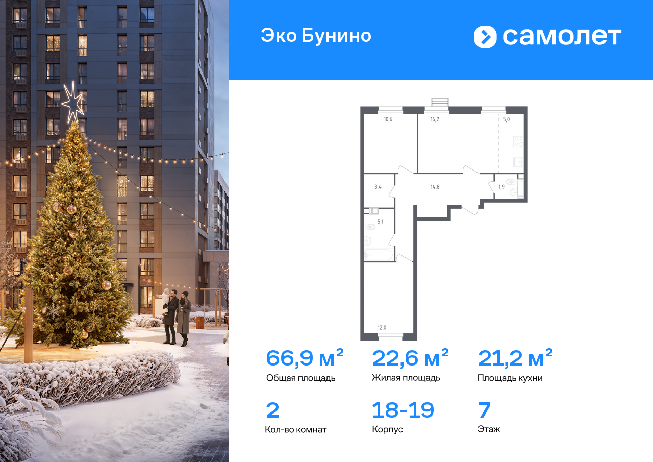 Двухкомнатные квартиры в ЖК «Эко Бунино»