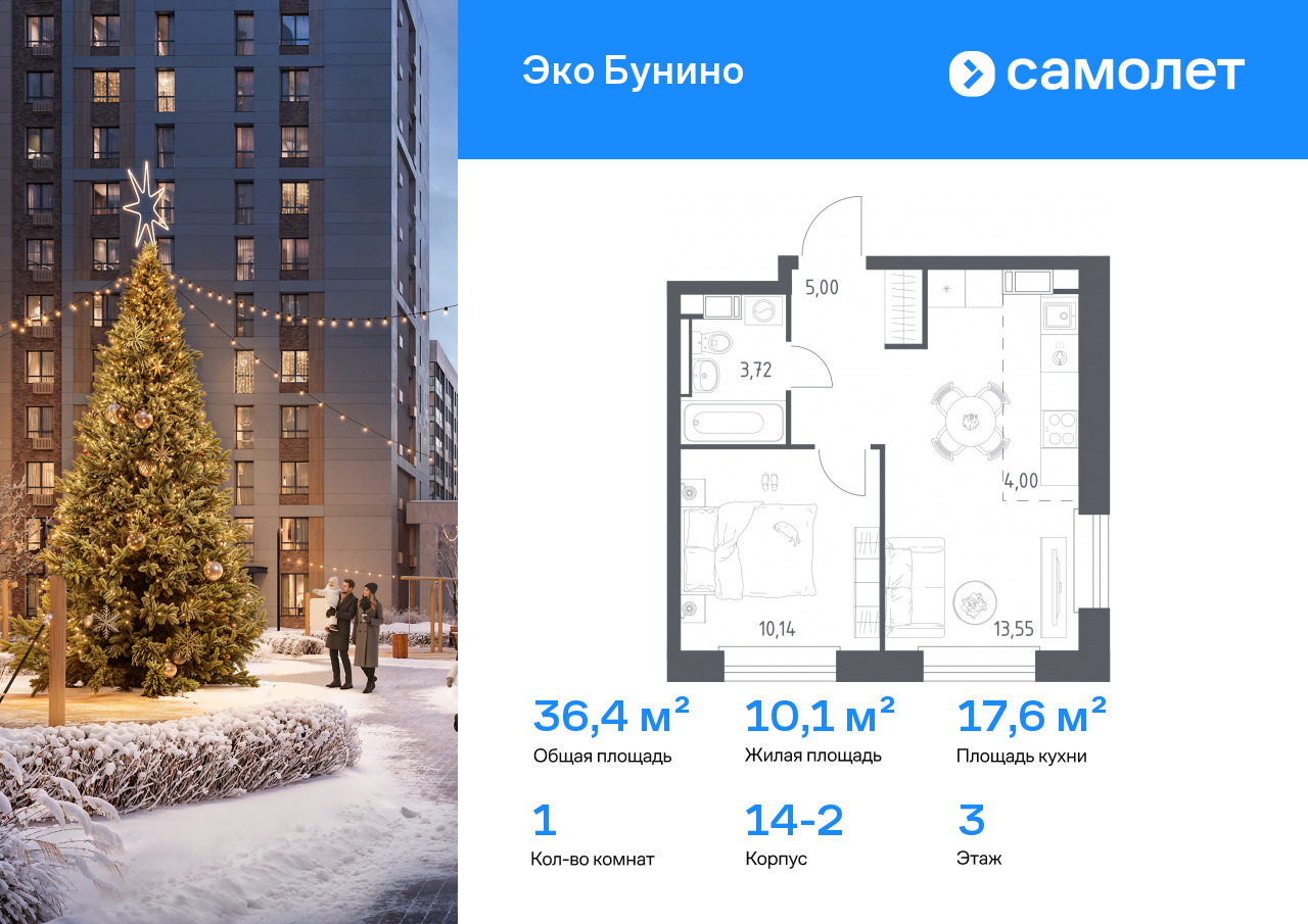 Евро однокомнатные квартиры в ЖК «Эко Бунино»