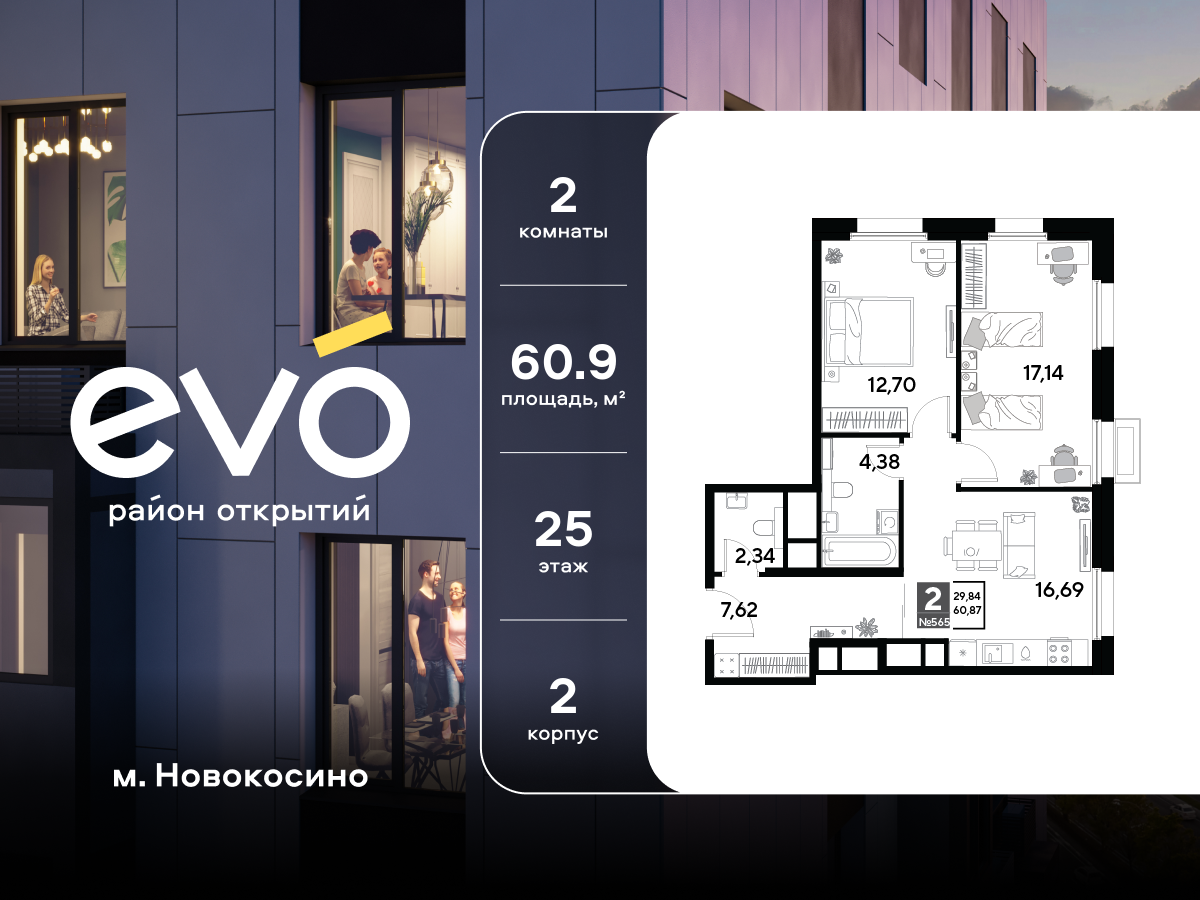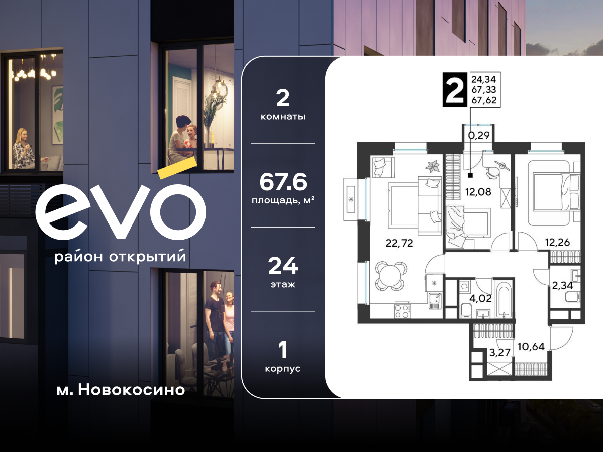 ЖК EVO (ЭВО) - современный жилищный комплекс, который будет построен в 1 квартале 2026 г. и относится к комфорт-классу. Имеет удобное расположение: Московская область, Реутов. Расстояние до ближайшего метро Новокосино - 5 минут на автомобиле.