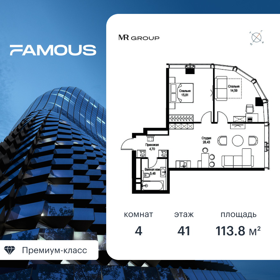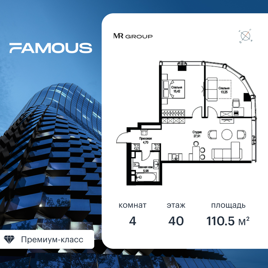 Четырехкомнатные квартиры в ЖК Famous (Феймос)