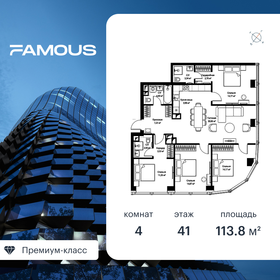 Четырехкомнатные квартиры в ЖК Famous (Феймос)