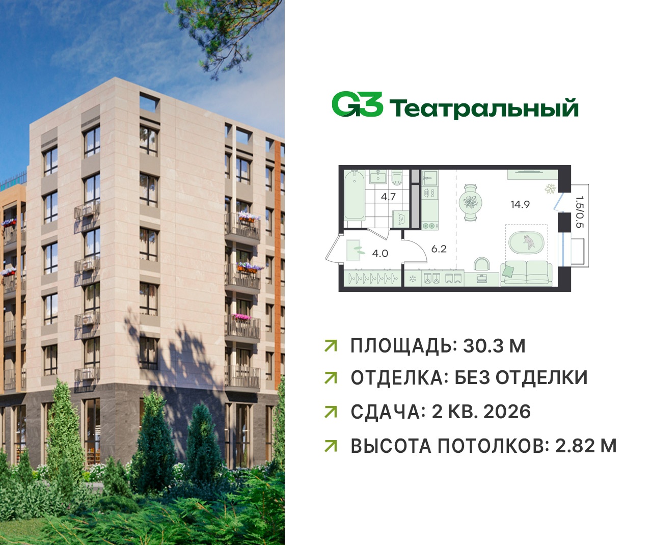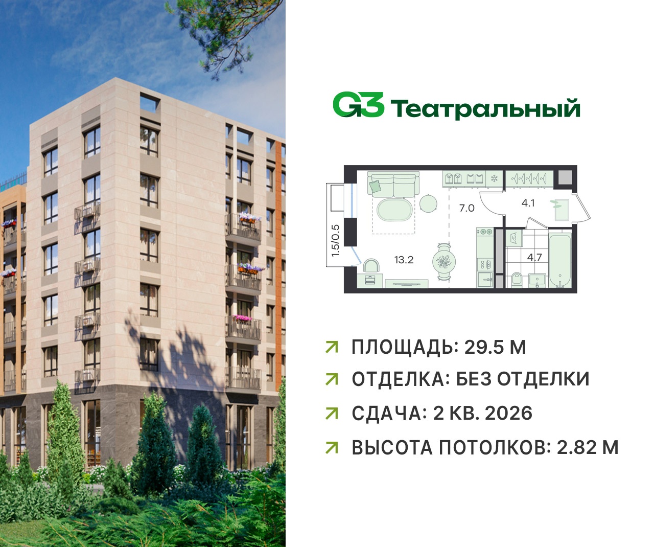 Квартиры-студии в ЖК G3 Театральный (Джи 3)