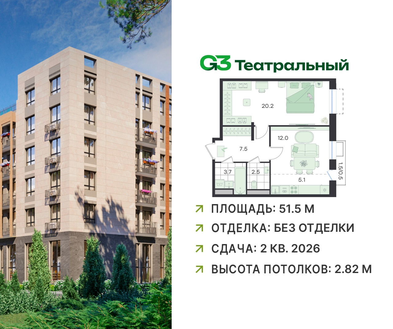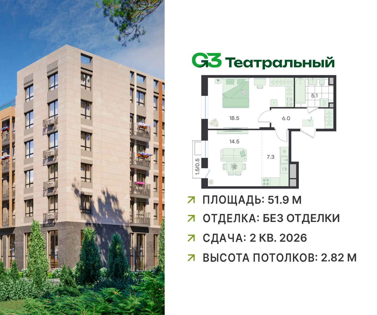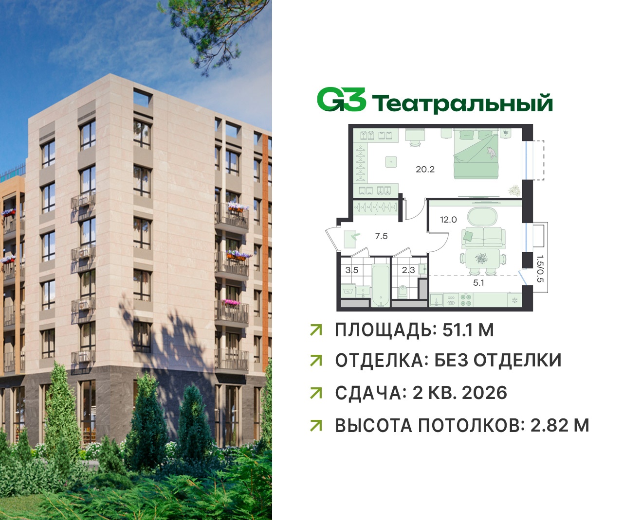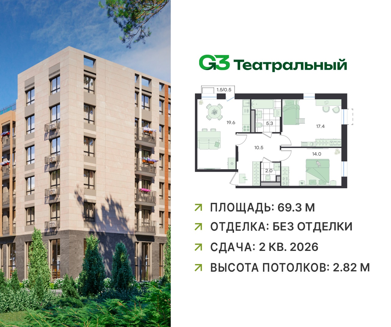 Двухкомнатные квартиры в ЖК G3 Театральный (Джи 3)