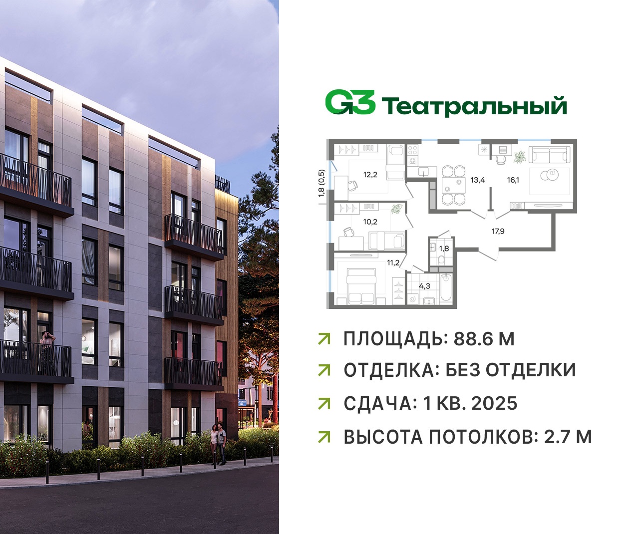 Четырехкомнатные квартиры в ЖК G3 Театральный (Джи 3)