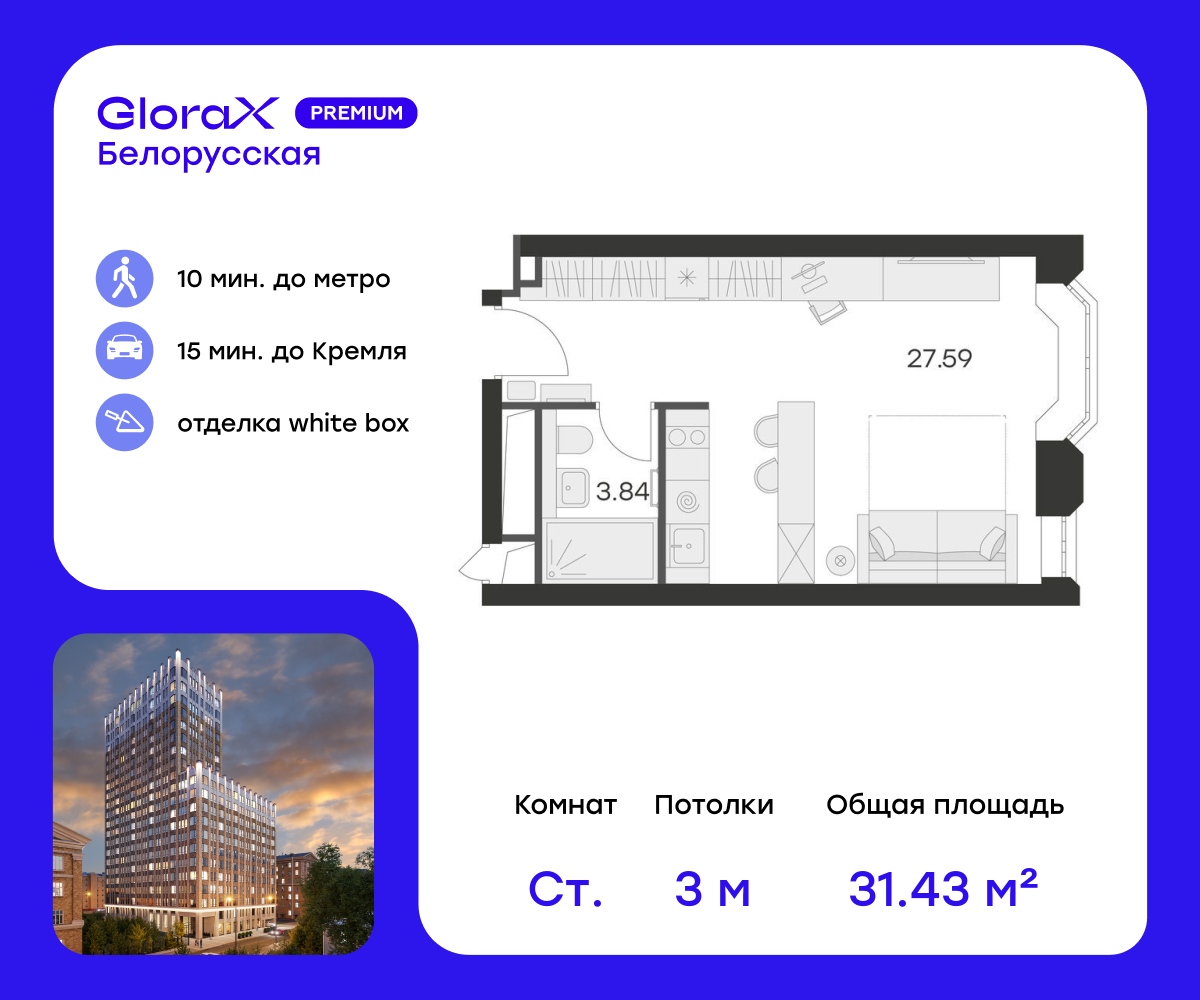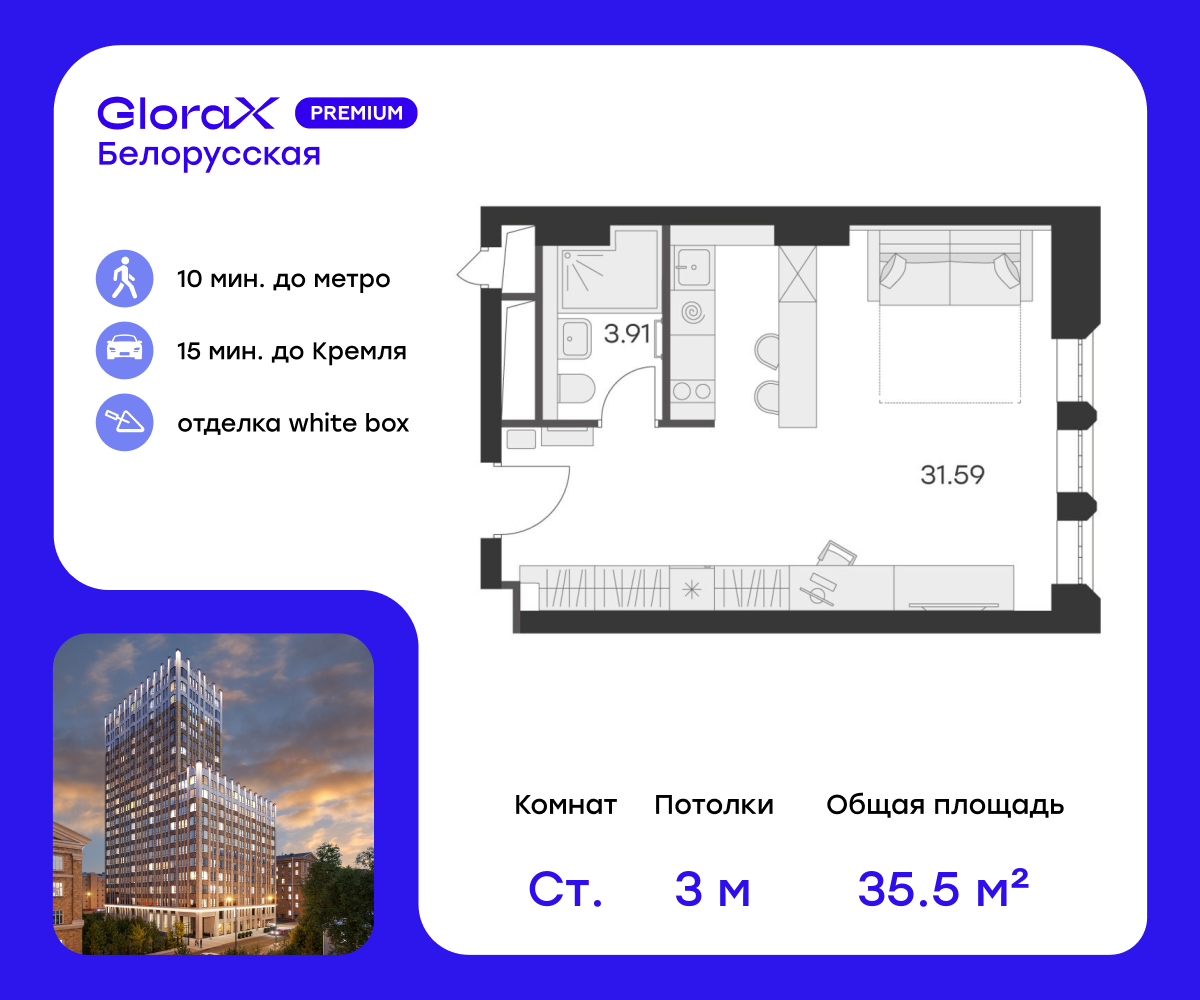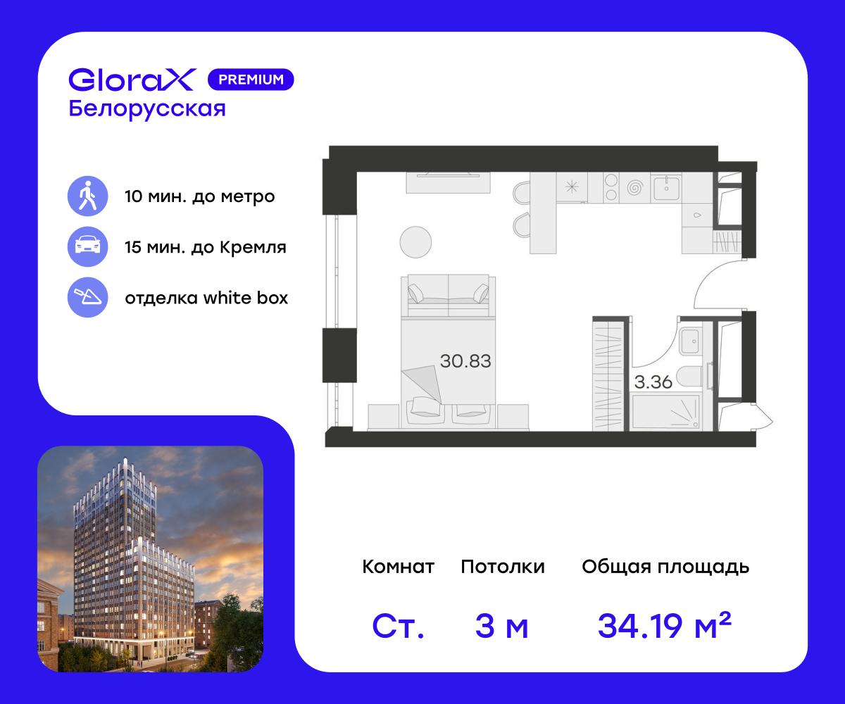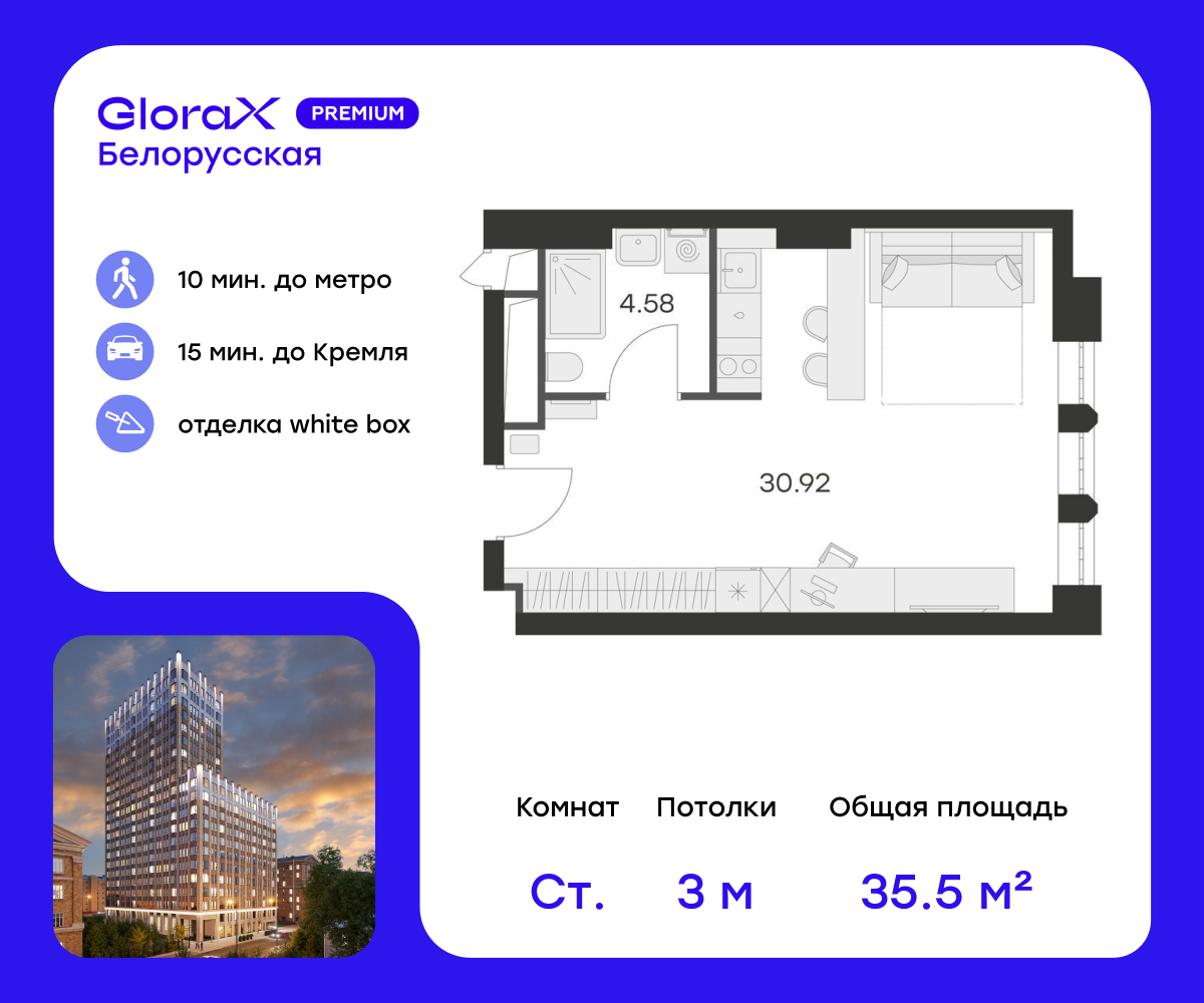 Квартиры-студии в Глоракс Премиум Белорусская (GloraX Premium Белорусская)
