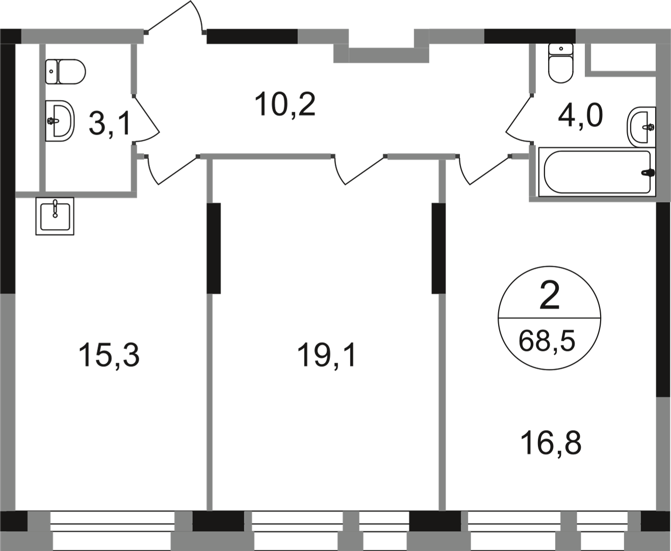 Двухкомнатные квартиры в ЖК «Город-парк Первый Московский»