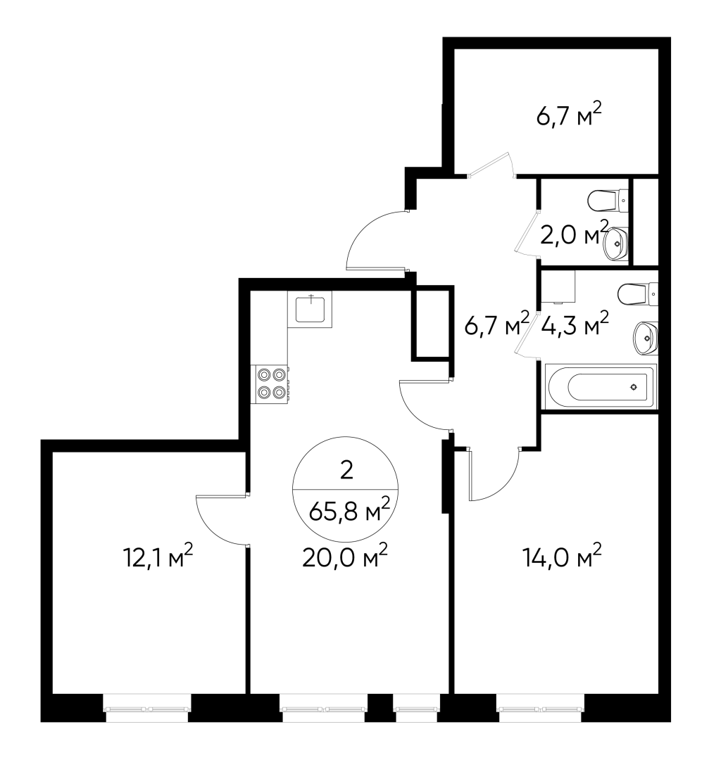 Двухкомнатные квартиры в ЖК «Город-парк Первый Московский»