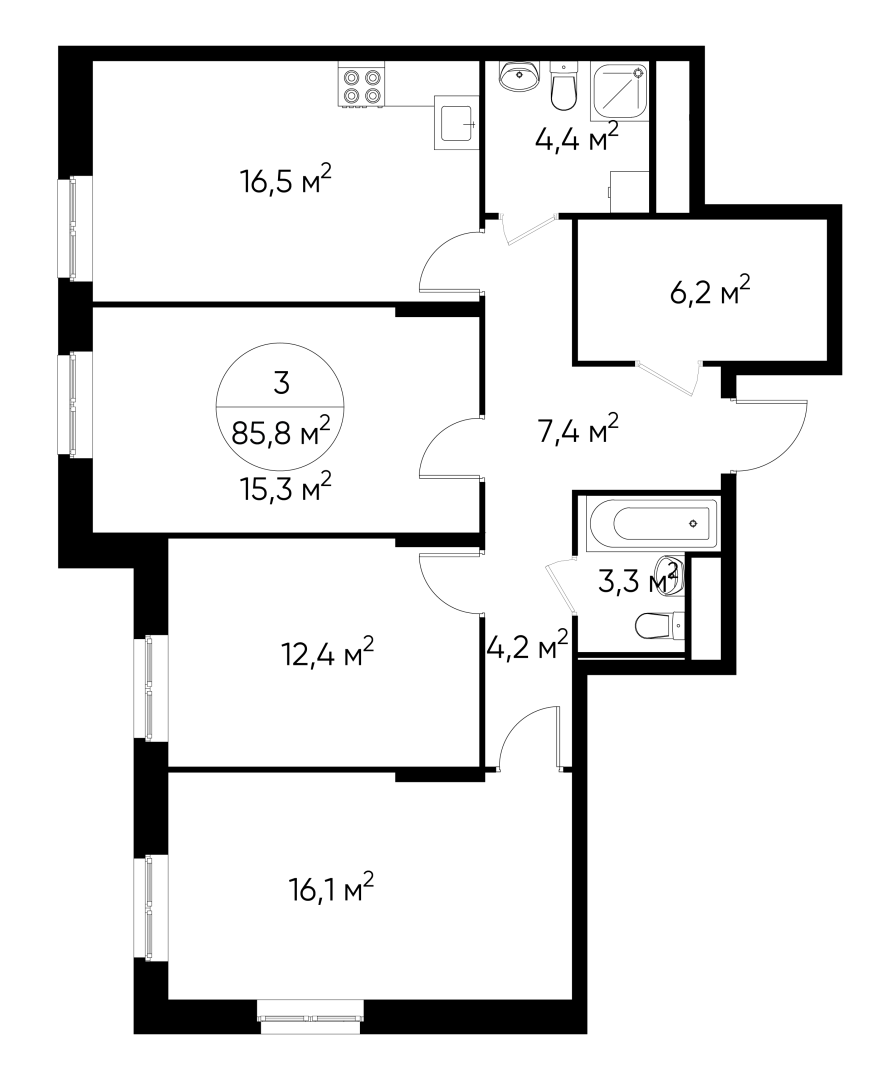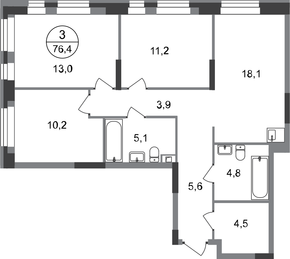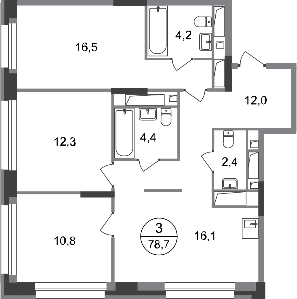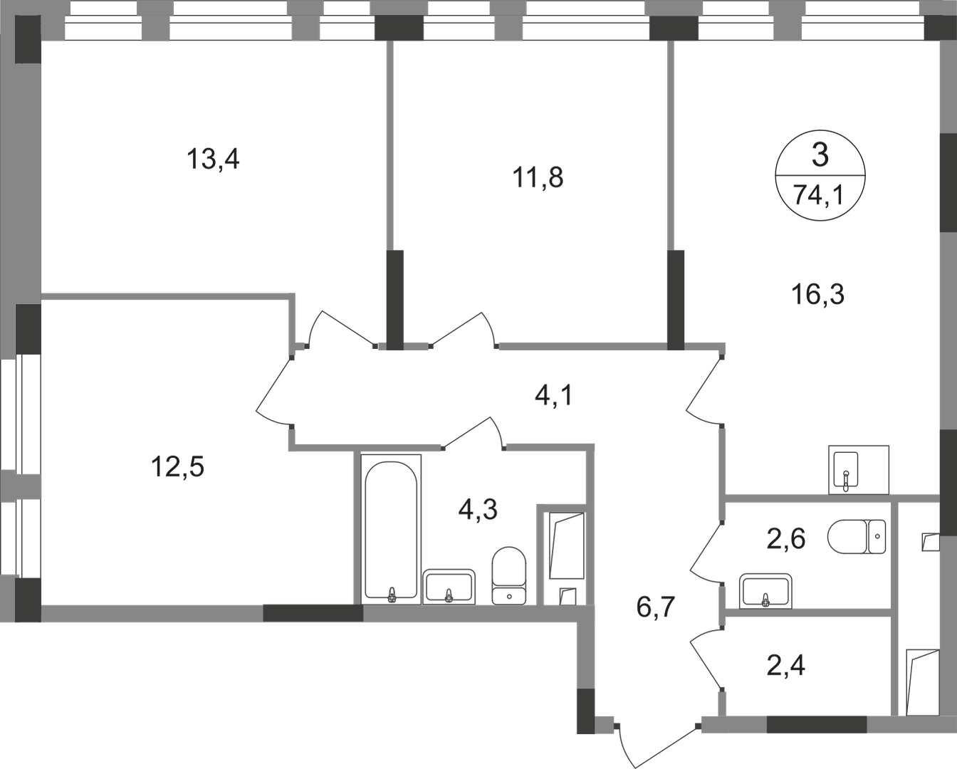 Трехкомнатные квартиры в ЖК «Город-парк Первый Московский»