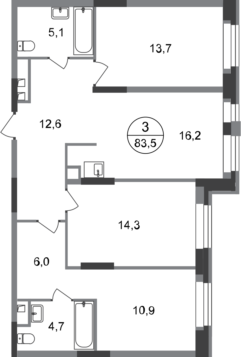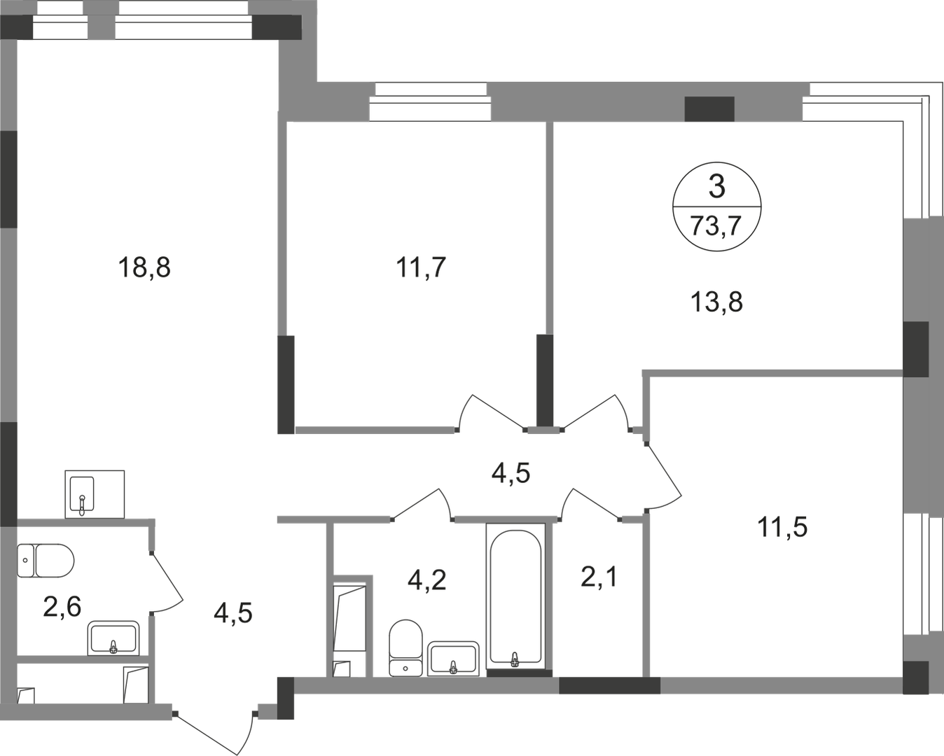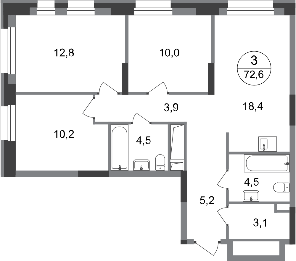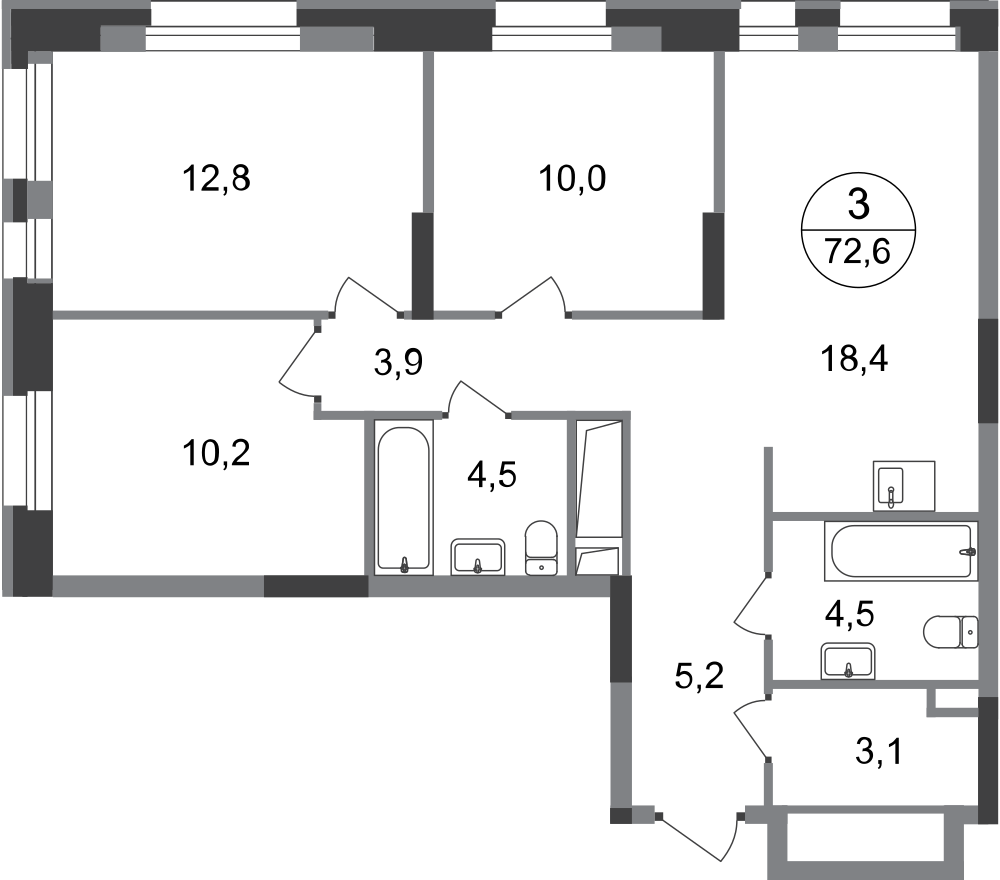 Трехкомнатные квартиры в ЖК «Город-парк Первый Московский»