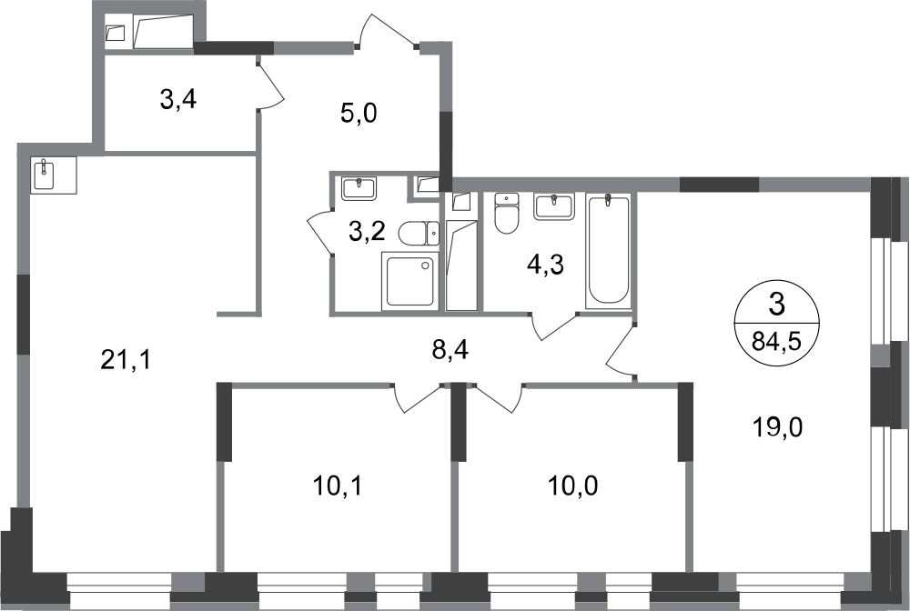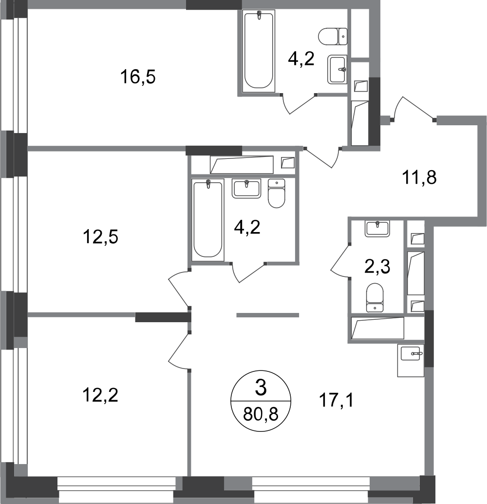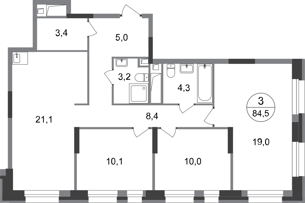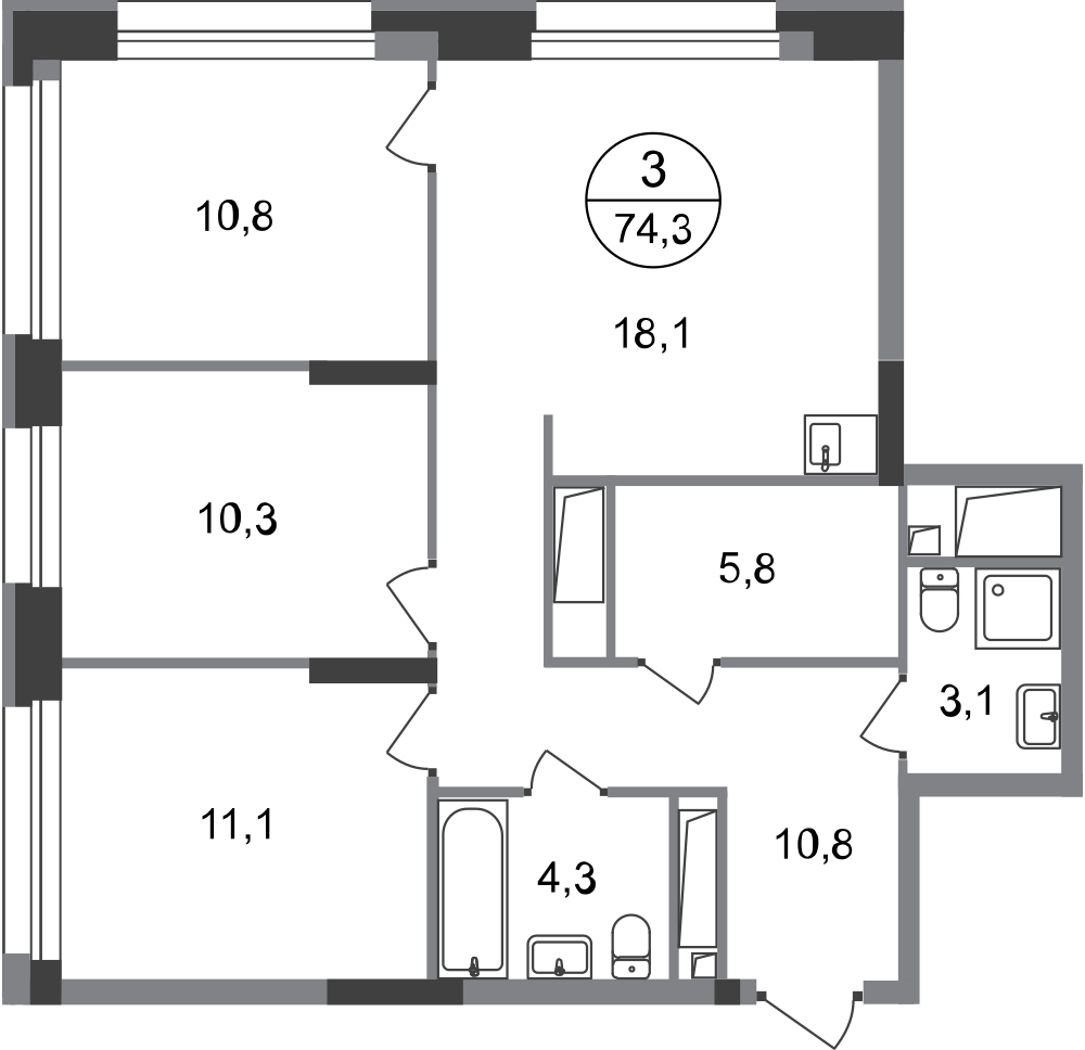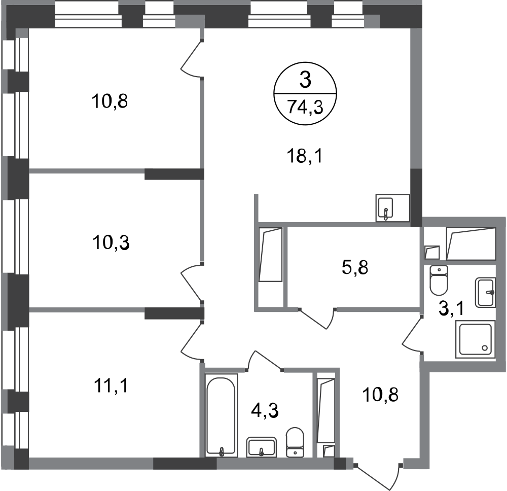 Трехкомнатные квартиры в ЖК «Город-парк Первый Московский»