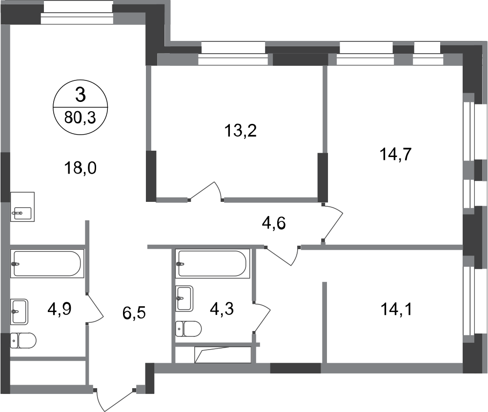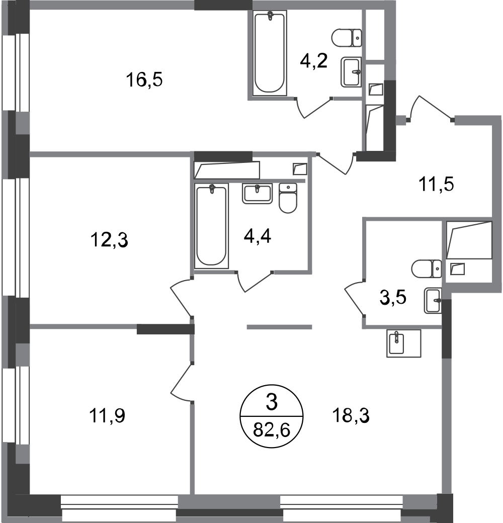 Трехкомнатные квартиры в ЖК «Город-парк Первый Московский»