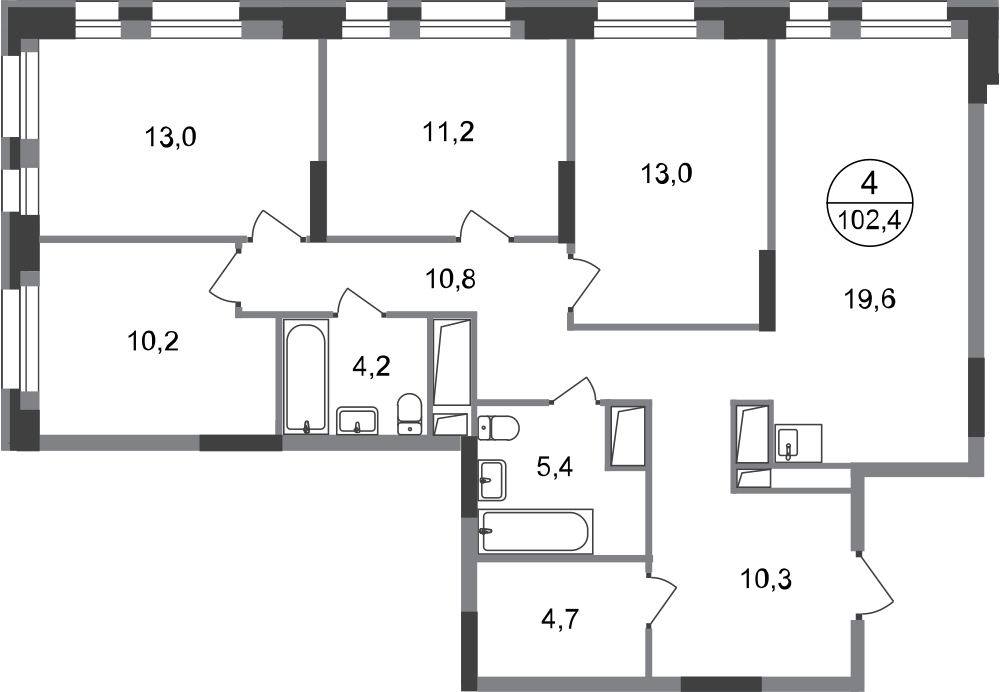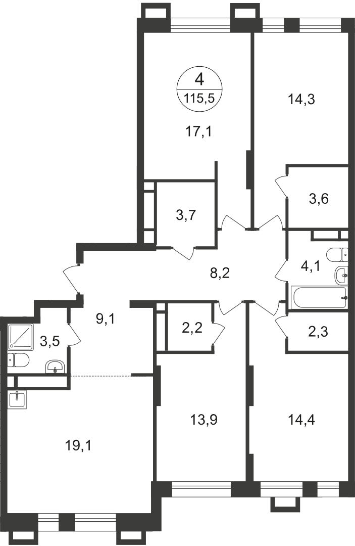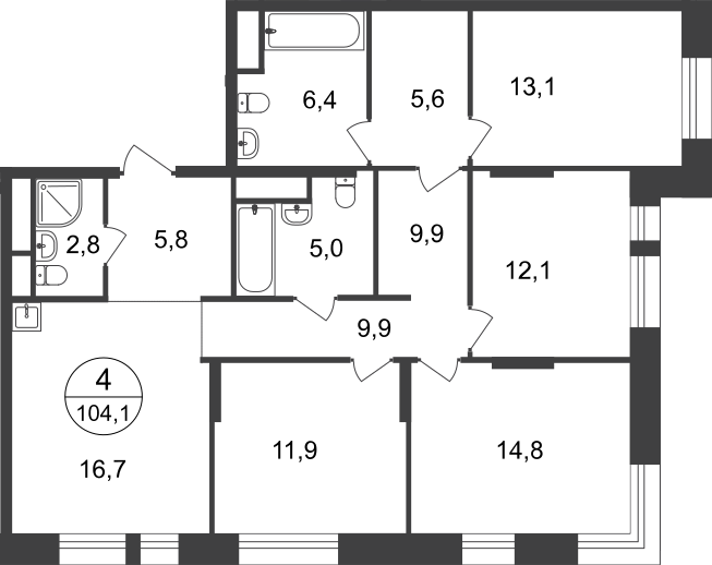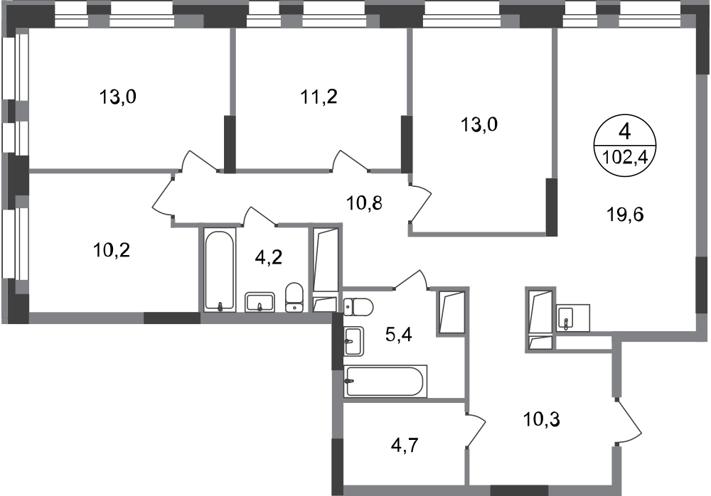 Четырехкомнатные квартиры в ЖК «Город-парк Первый Московский»