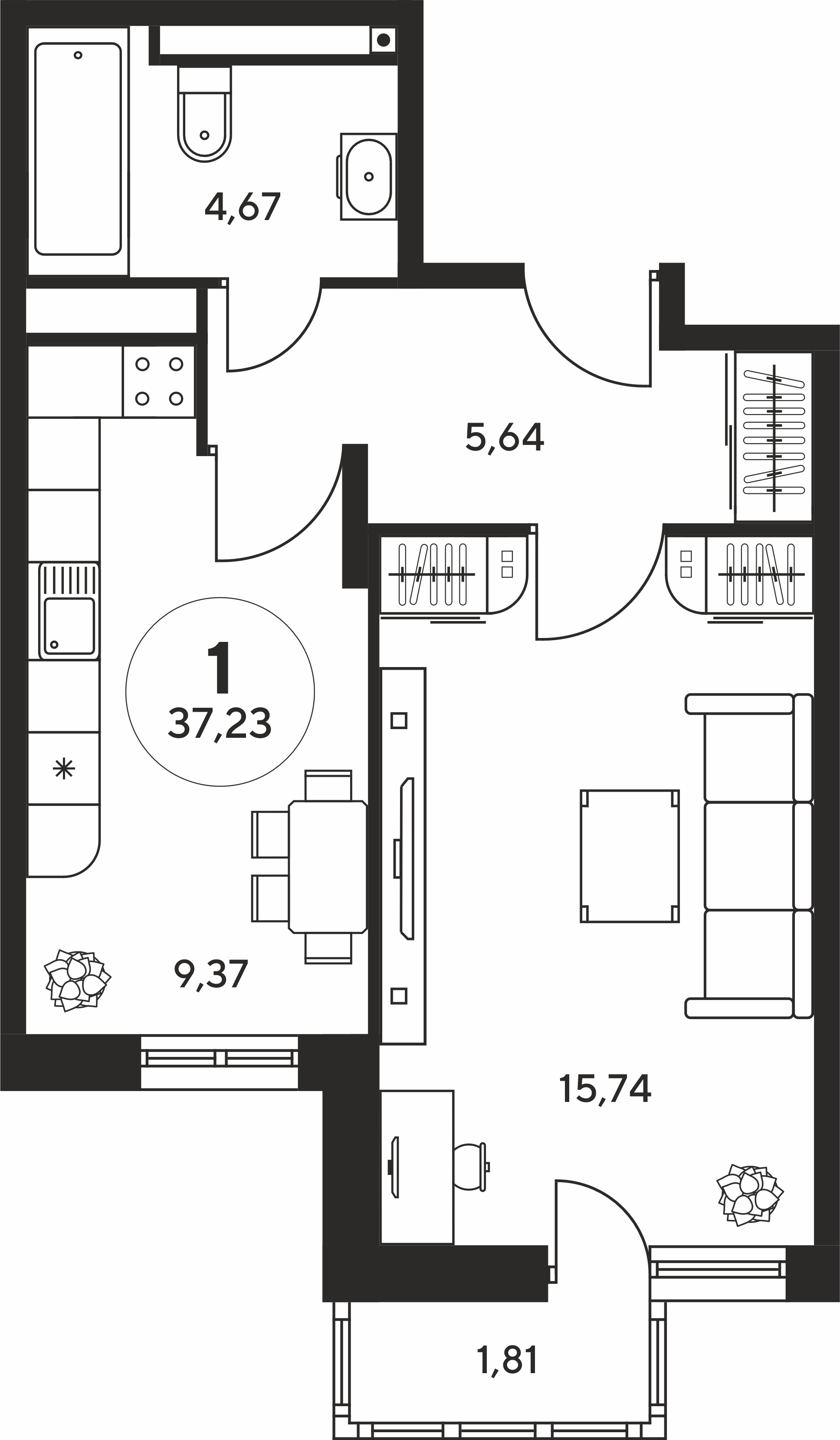 1-комнатная (37м2)