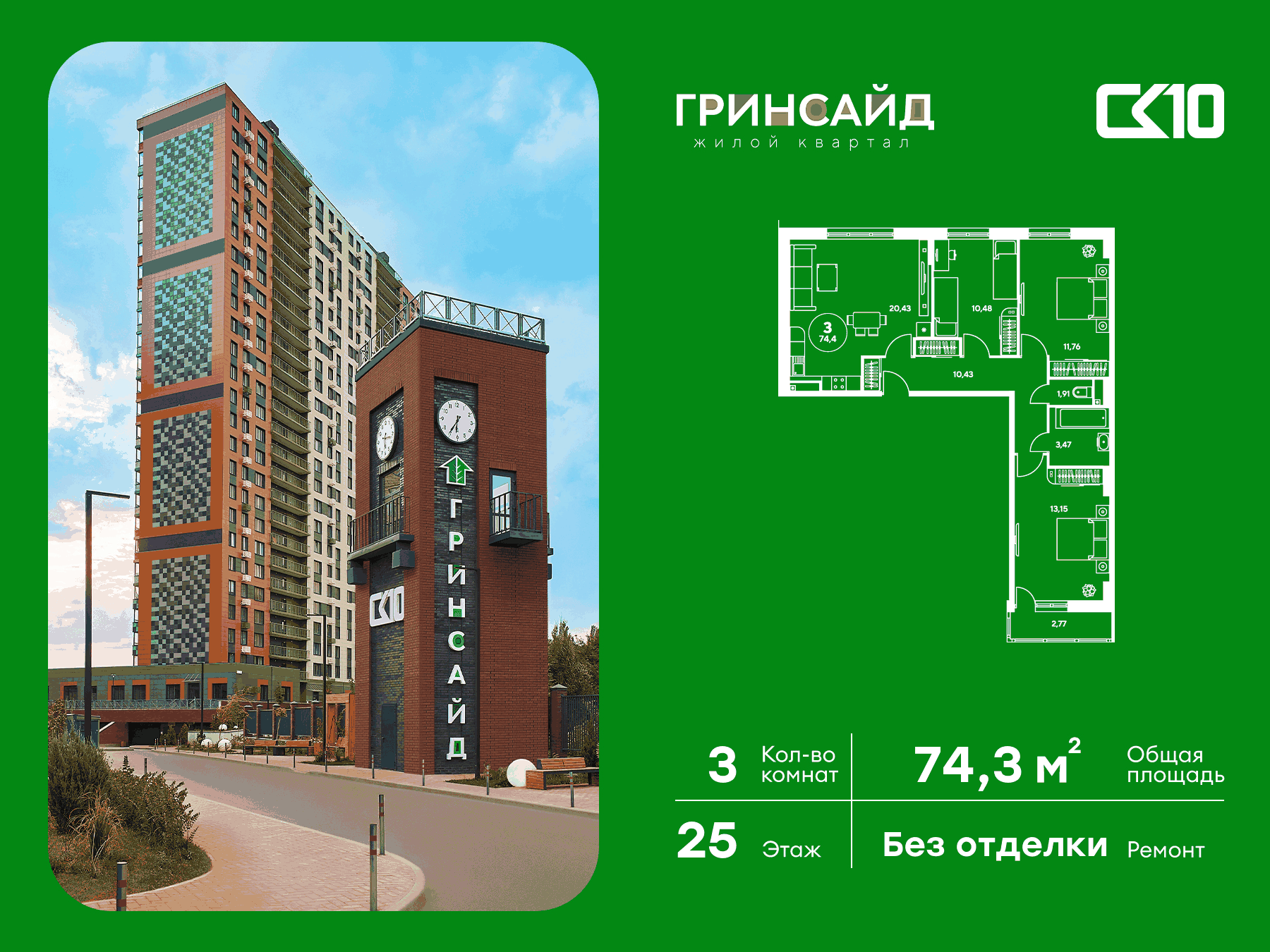Трехкомнатные квартиры в ЖК Гринсайд - страница 2