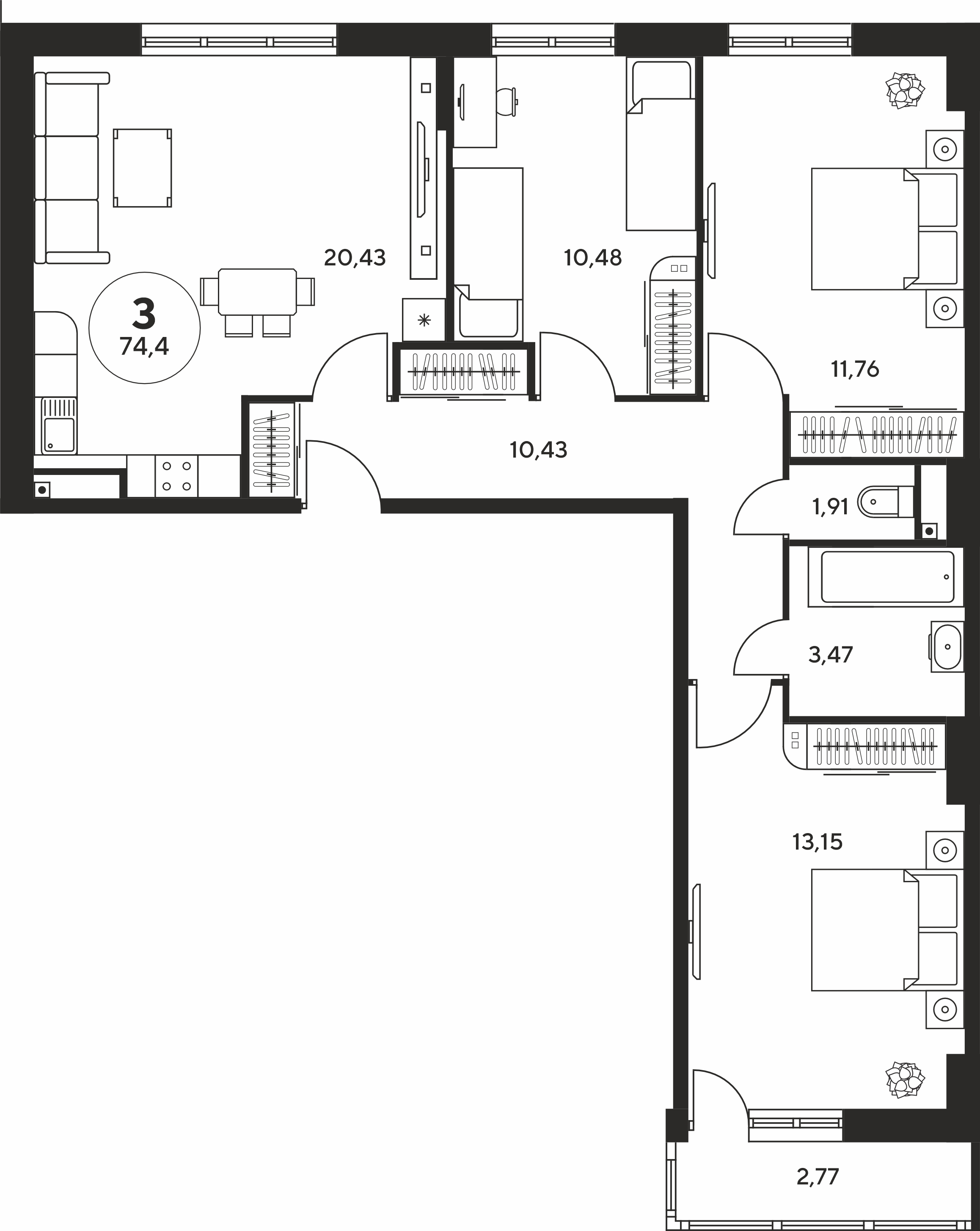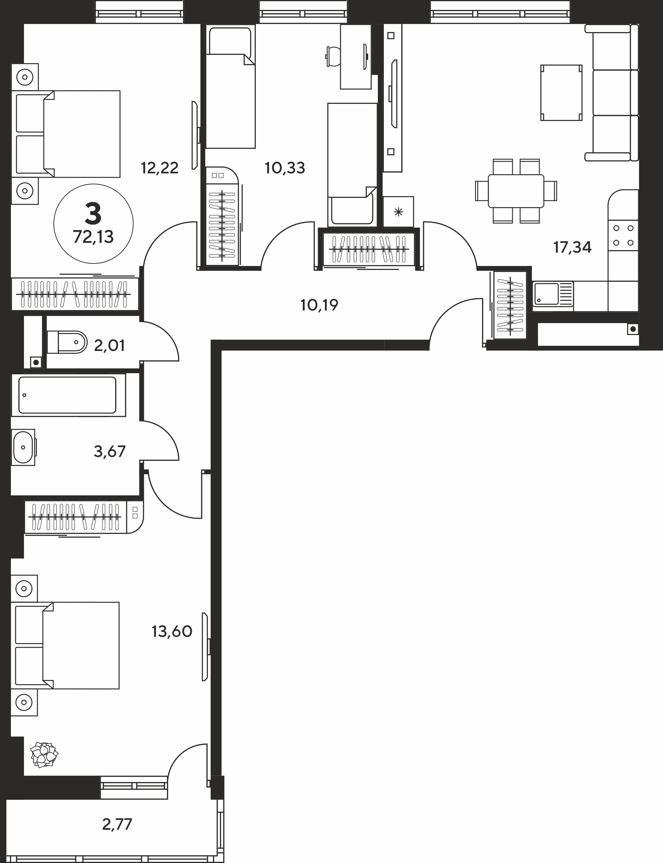 Евро трехкомнатные квартиры в ЖК Гринсайд