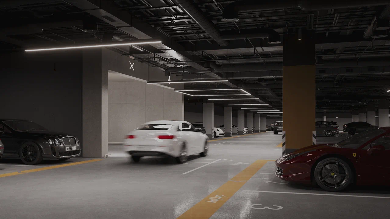Подземный паркинг рассчитан на 575 машиномест. В паркинге отведено место для кладовых, которые помогут освободить больше пространства дома.
