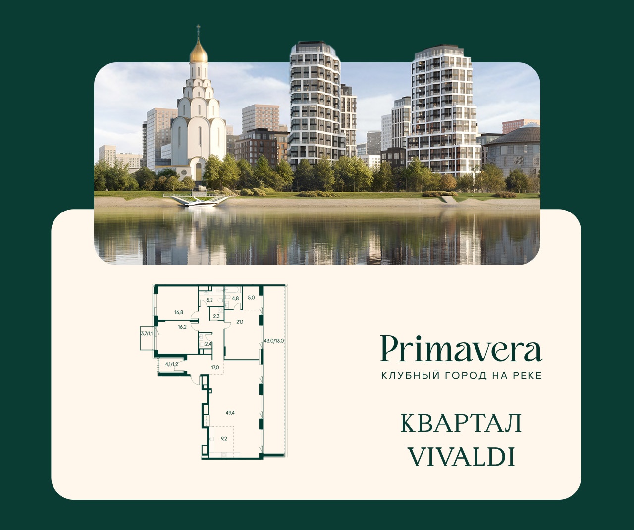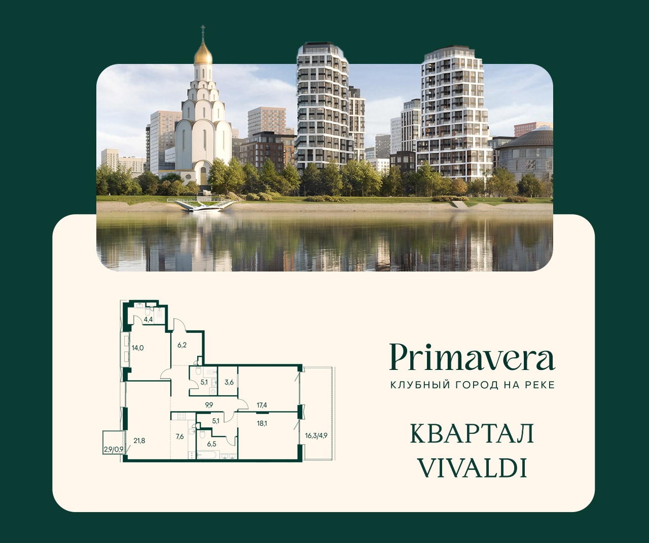 Жилой квартал премиум-класса «Клубный город на реке Primavera» строится на северо-западе столицы. ЖК расположен на берегу Москвы-реки в районе Покровское-Стрешнево.