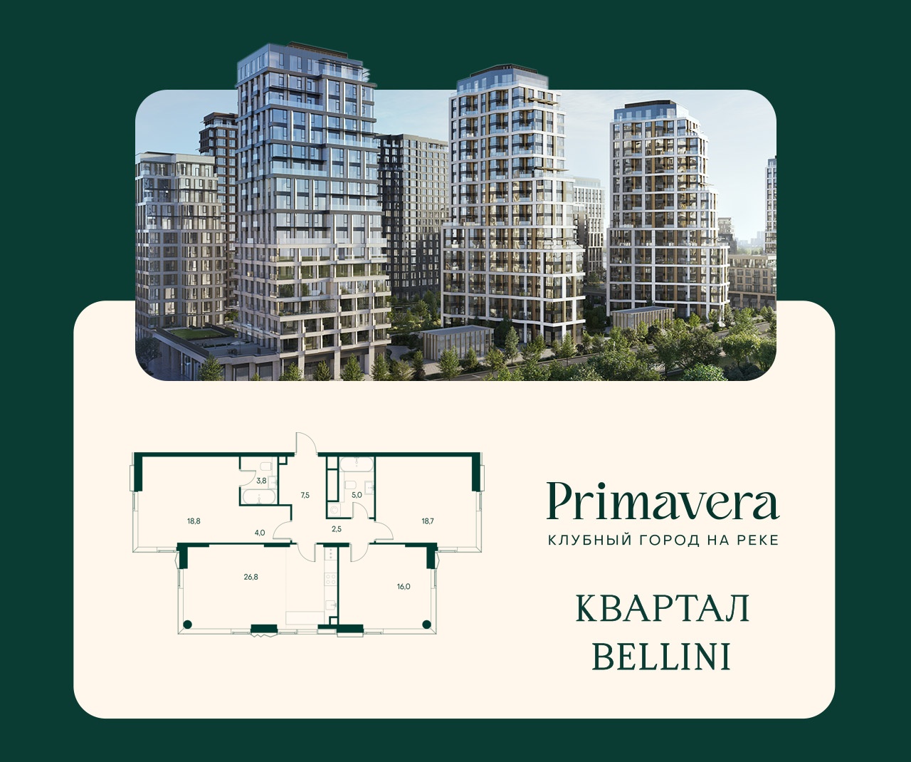 Жилой квартал премиум-класса «Клубный город на реке Primavera» строится на северо-западе столицы. ЖК расположен на берегу Москвы-реки в районе Покровское-Стрешнево.